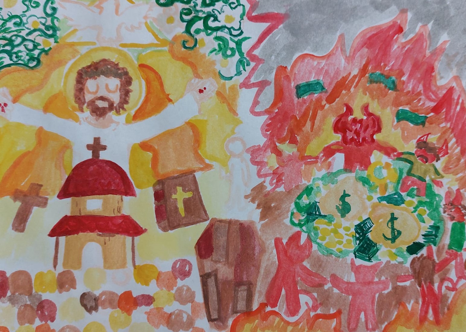 (Veniți la Mine și Eu vă voi da pacea! – acuarelă: Potra Sara Maria - clasa a VIII –a - Școala Gimnazială Mircea Eliade - Cercul de Pictură ”COLORIA” Satu Mare )