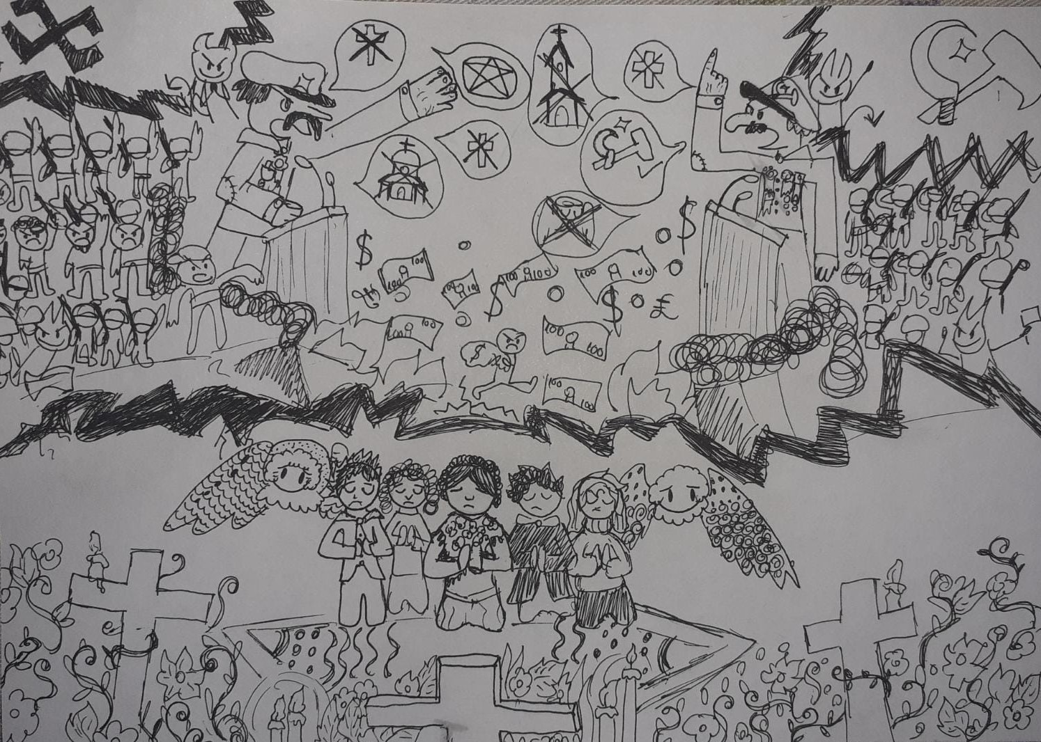 (Jos "armele" întoarceți-vă la Dumnezeu – grafică creion: Potra Sara Maria - clasa a VIII –a - Școala Gimnazială Mircea Eliade - Cercul de Pictură ”COLORIA” Satu Mare )