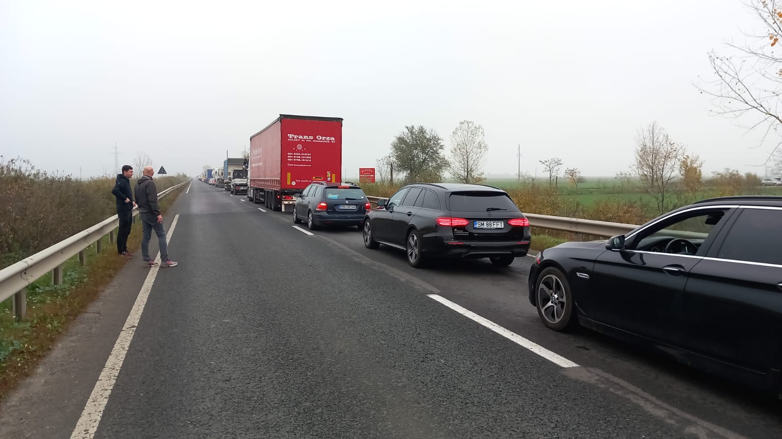 Pentru acest fapt, traficul este oprit de zeci de minute, iar coada de mașini se întinde până la ieșirea din Carei