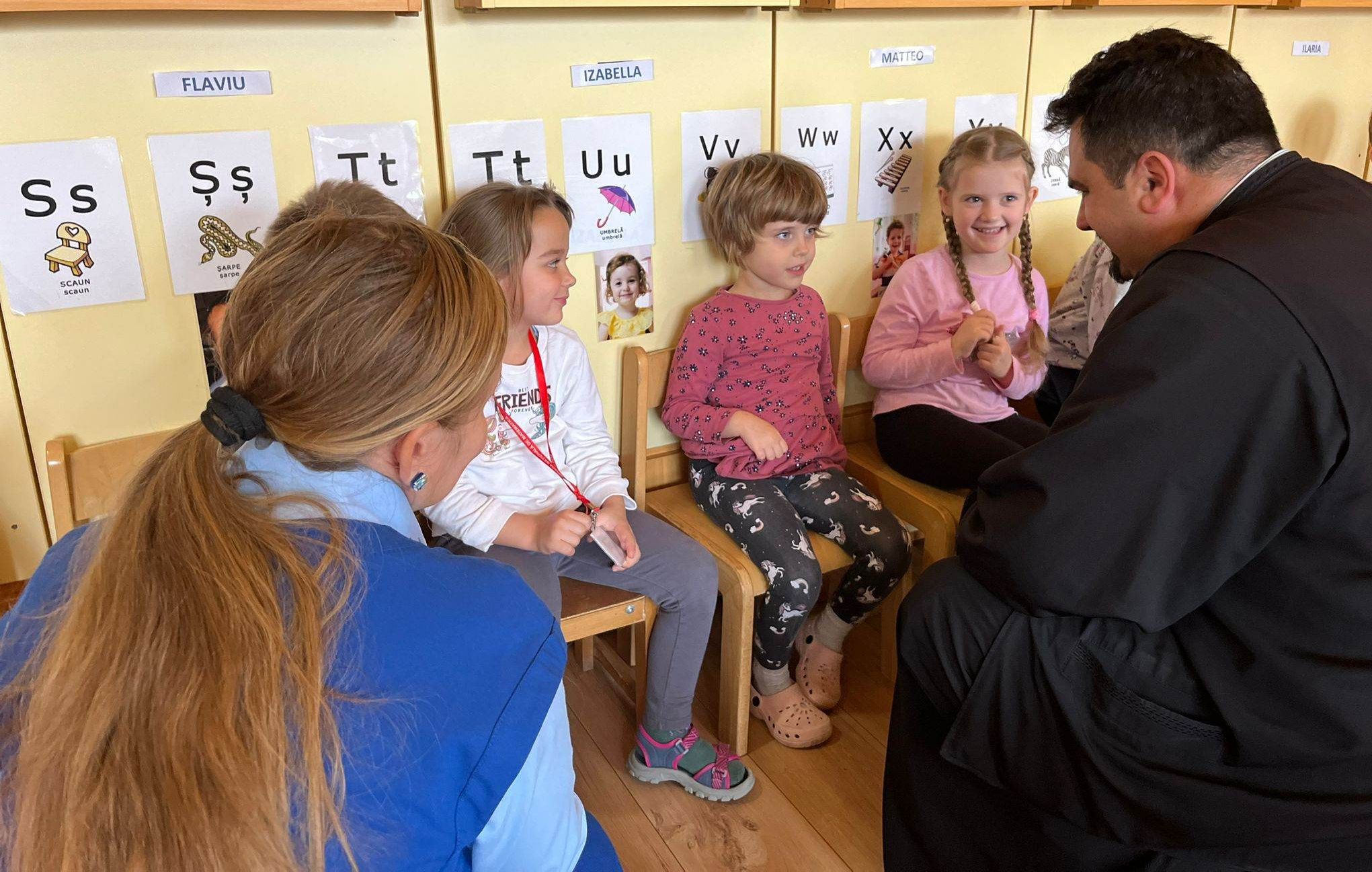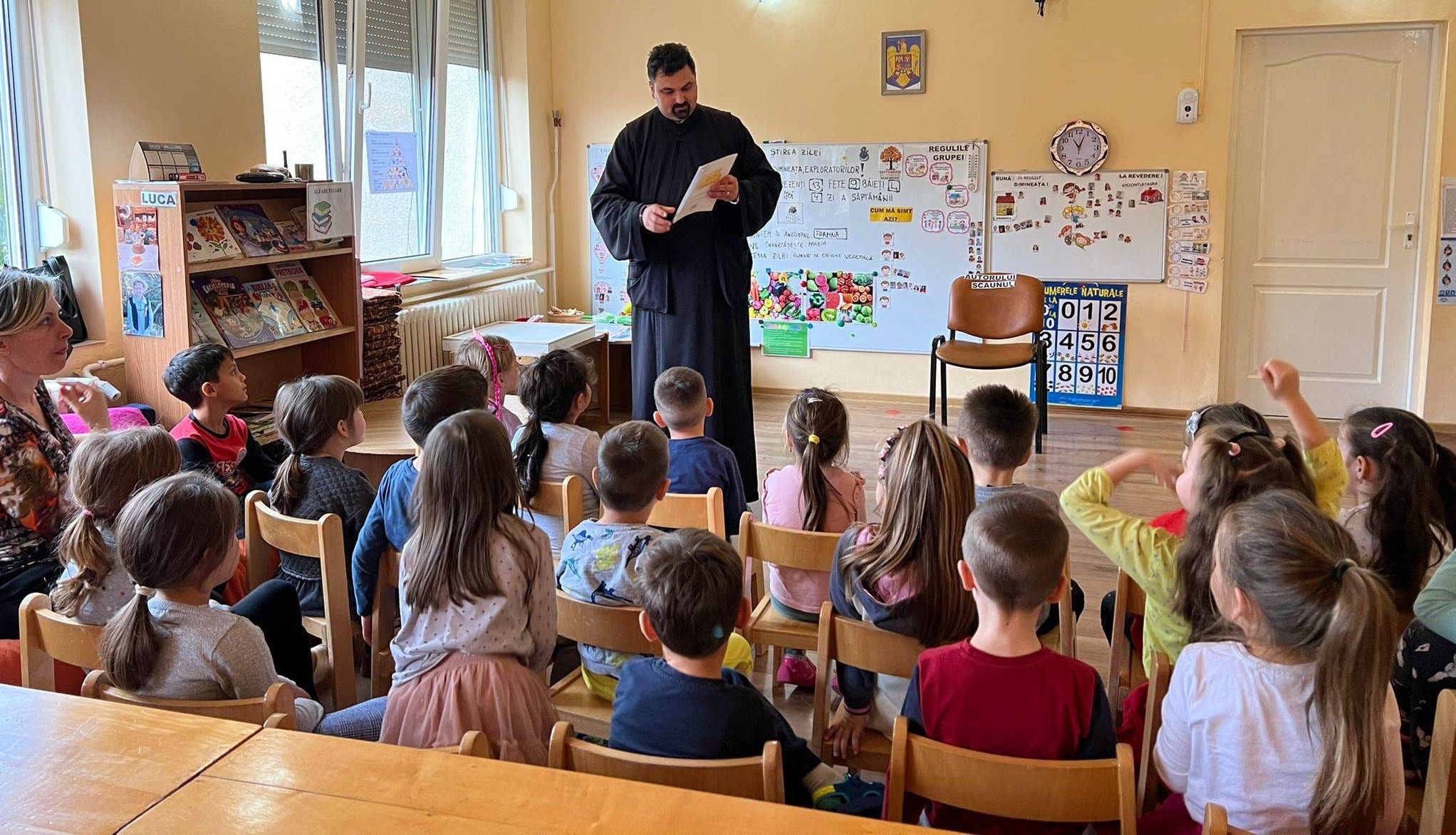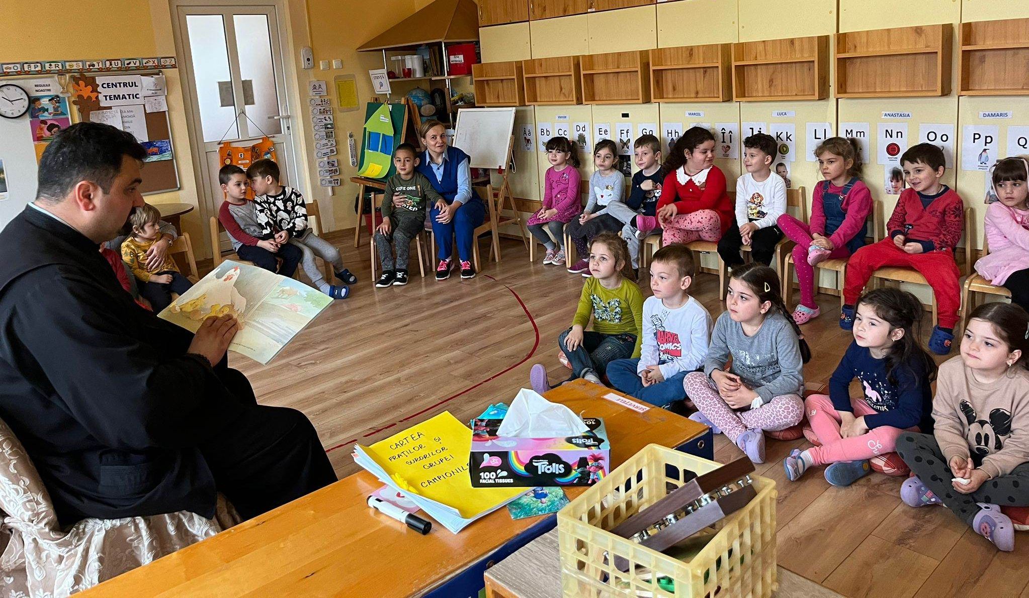 Prin jocuri, cântecele, exemple din viața personală, părintele Cristian a creat o atmosferă de POVESTE.
