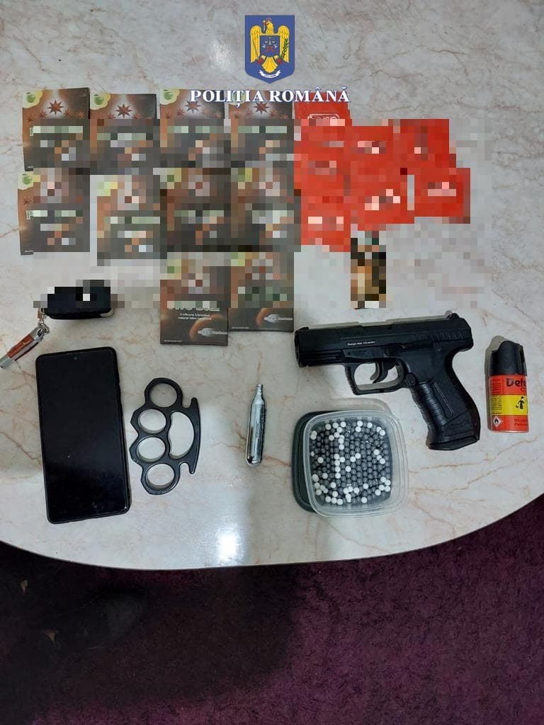 20 grame de materie vegetală de culoare verde-oliv, susceptibilă a fi cannabis, 1 pistol air soft, 524 bile,