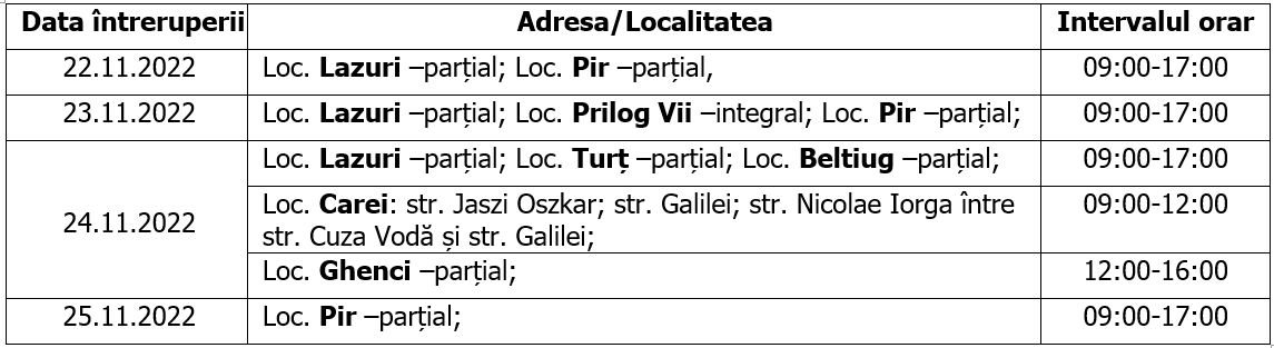 Ne cerem scuze pentru neplăcerile cauzate de aceste întreruperi, care sunt însă necesare pentru asigurarea unei bune funcţionări a instalaţiilor.