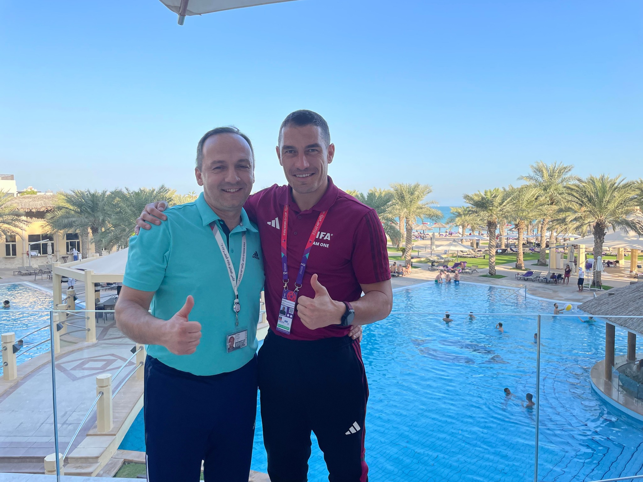 Că veni vorba de Kovacs...m-am bucurat să văd o imagine din Qatar cu o revedere după mai bine de 20 de ani. Între fostul divizionar sătmărean Florin Buțurcă și Istvan Kovacs...Buțurcă e plecat de ani buni în Canada și e acum implicat în arbitrajul din țara lui...Hrușcă și Doroftei ( printre alții::😊)Iar la Mondial a ajuns ca fan al lui Davies și al Canadei...Dar despre povestea lui Florin Buțurcă într-o altă rubrică...Mai pe larg...