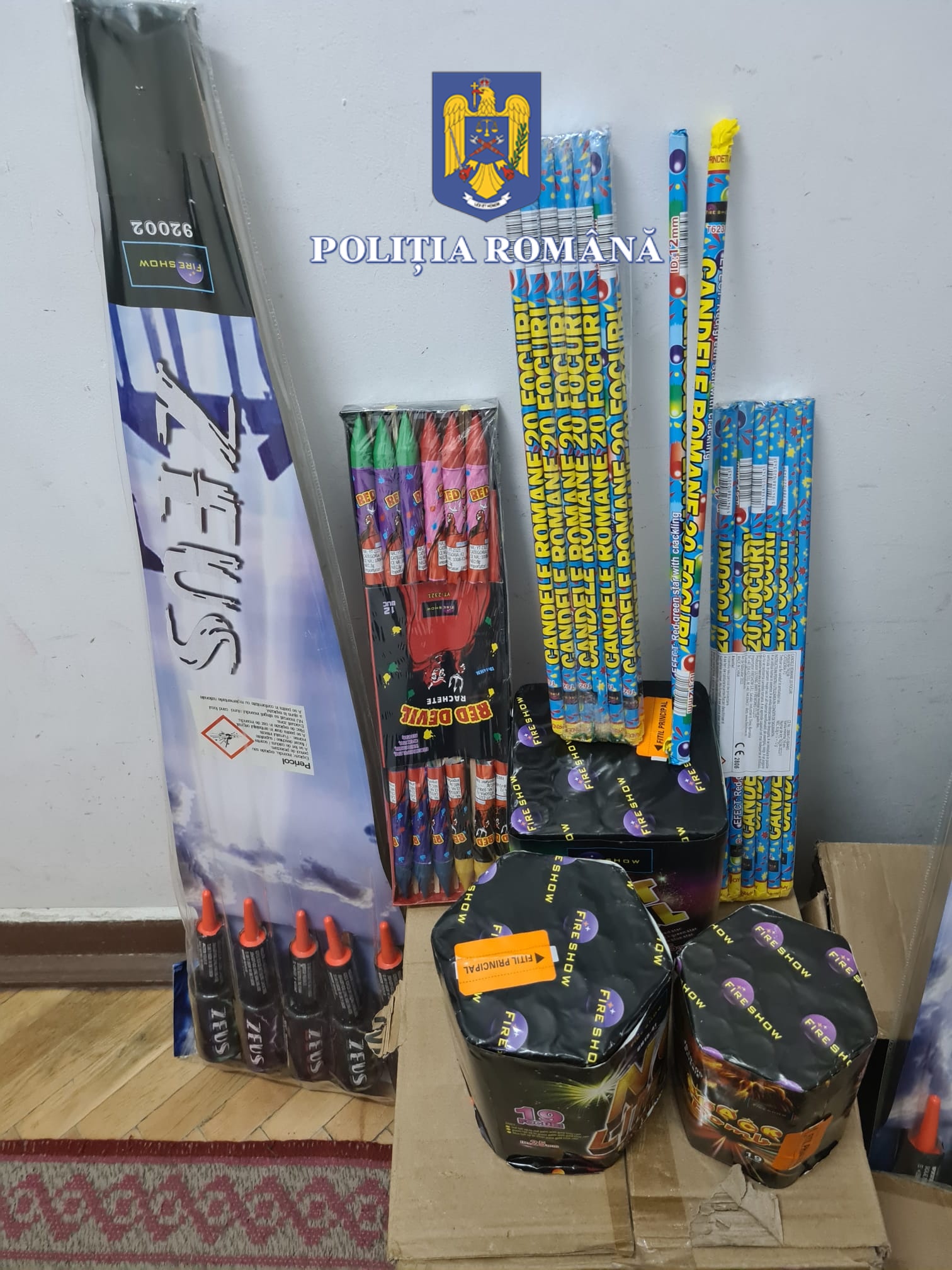 Cu ocazia efectuării perchezițiilor au fost identificate și ridicate în vederea confiscării 90 de kilograme de articole pirotehnice din categoriile F1, F2, F3, de diferite mărci, în valoare de aproximativ 10.000lei.