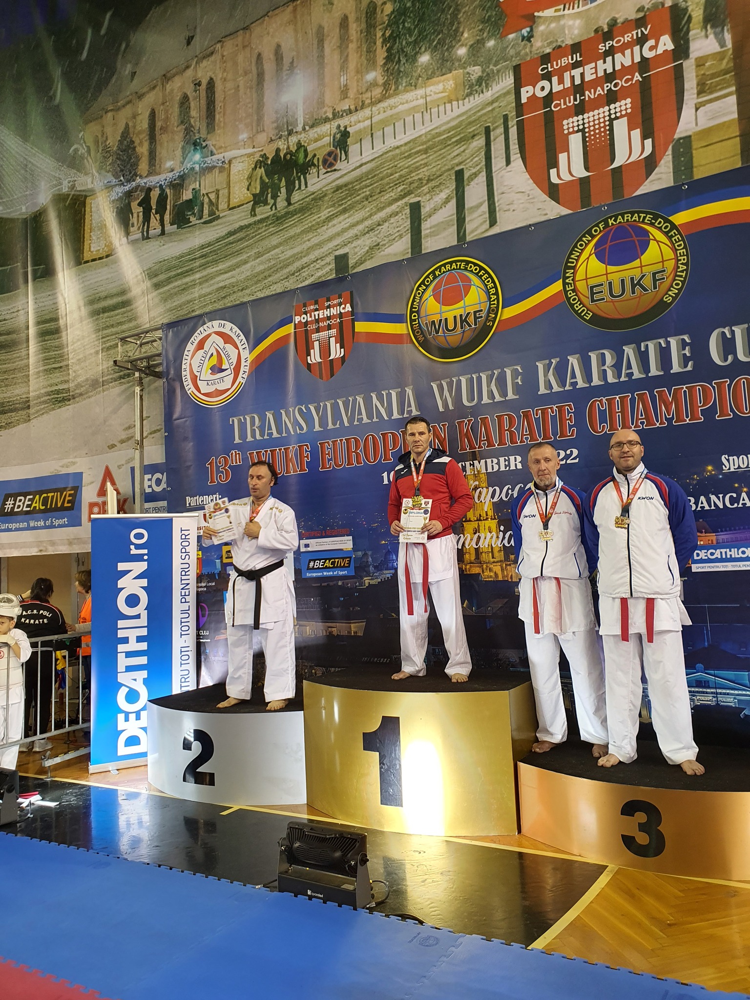 Igor Bălăcescu a triumfat la proba kumite individual ippon, +36 ani, open, și a urcat pe cea mai înaltă treaptă a podiumului.