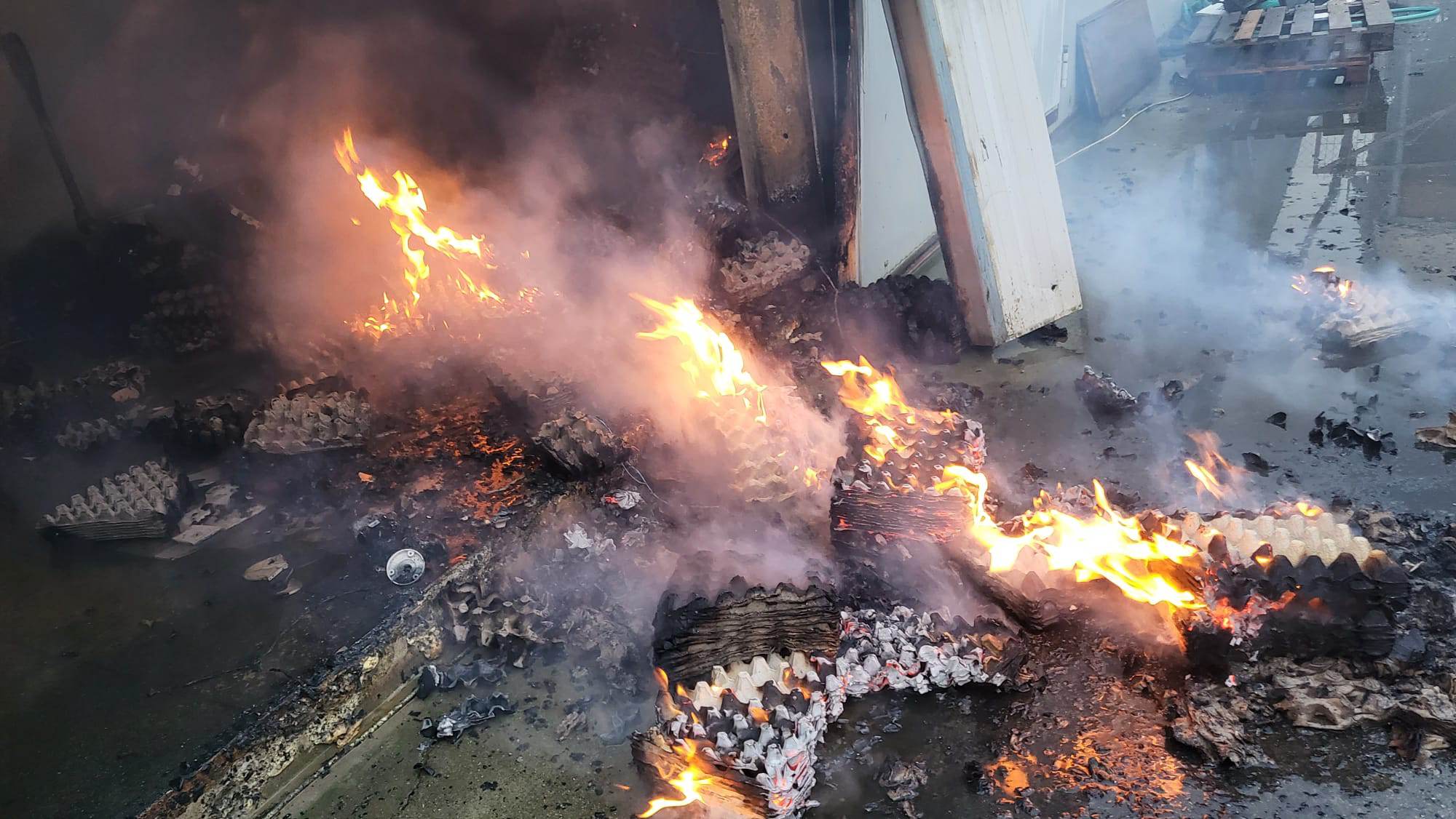 Din declarațiile proprietarului, in momentul izbcnirii incendiului in hala erau în jur de 9000 găini ouătoare, toate au ars.