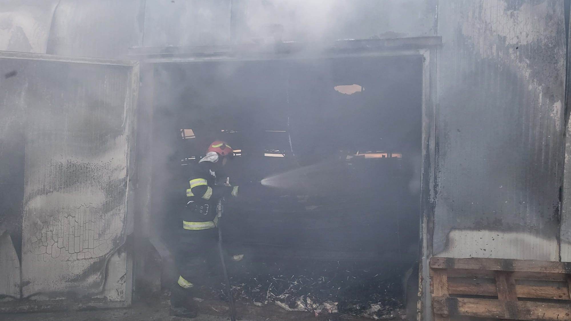 În momentul de față se intervine pentru degajarea elementelor/materialelor combustibile din hală.
