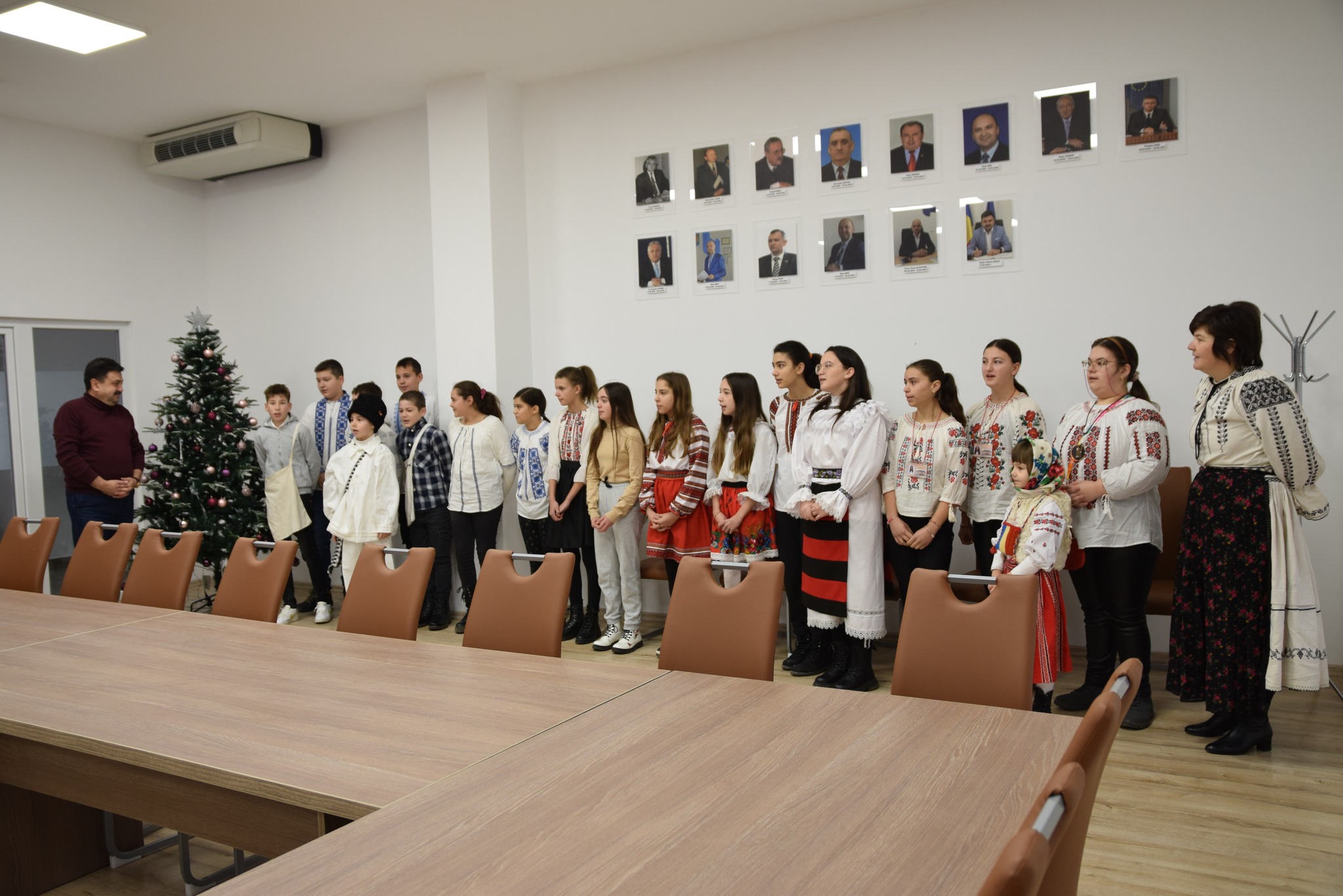 Angajaților Prefecturii le-au făcut o mare bucurie prin programul de colinde prezentat, elevii clasei a VI-a de la Școala Gimnazială Valea Vinului. Alături de ei și doi copilași din Pomi...