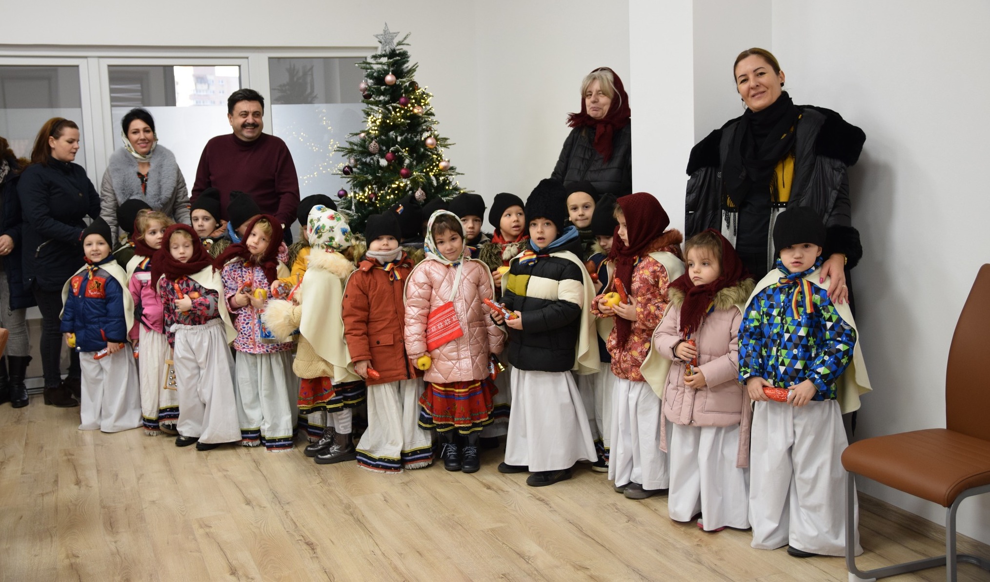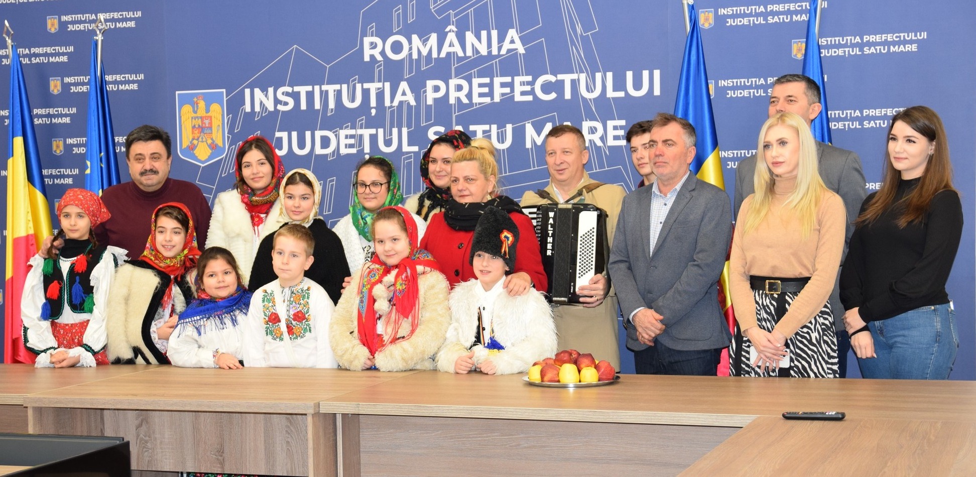 Angajații Prefecturii au început ziua cu o colindă și-o urare de la minunații copilași din Grupa Mare a Grădiniței cu Program Prelungit ”Dumbrava minunată” , structura Mondiala , Satu Mare.