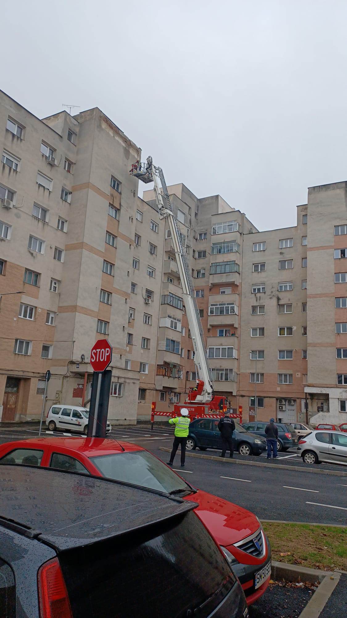 În jurul orei 11:30 Inspectoratul pentru Situații de Urgență "Someș" al județului Satu Mare, a fost alertat să intervină pentru degajarea unor elemente de tencuială pe fațada unui bloc de locuințe situat pe strada Independenței UH6.