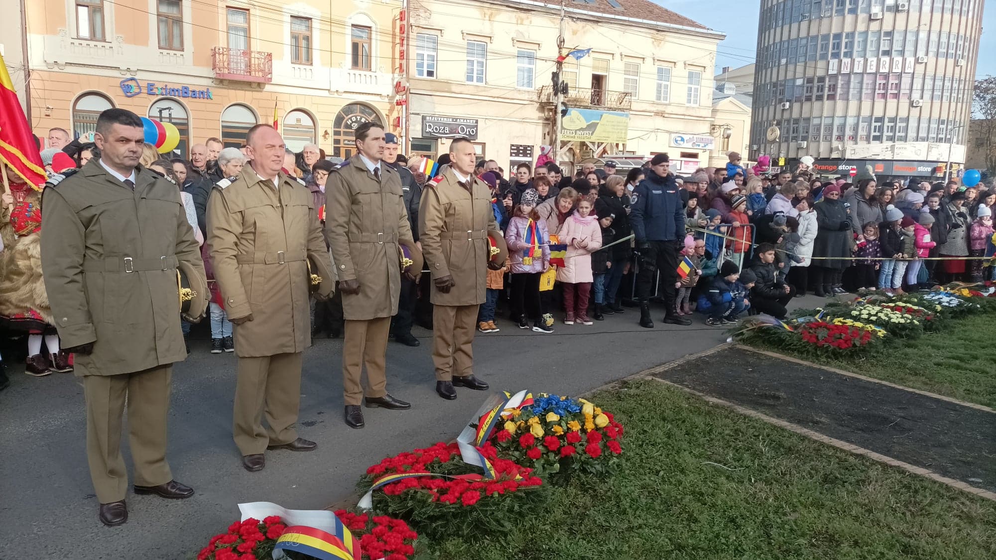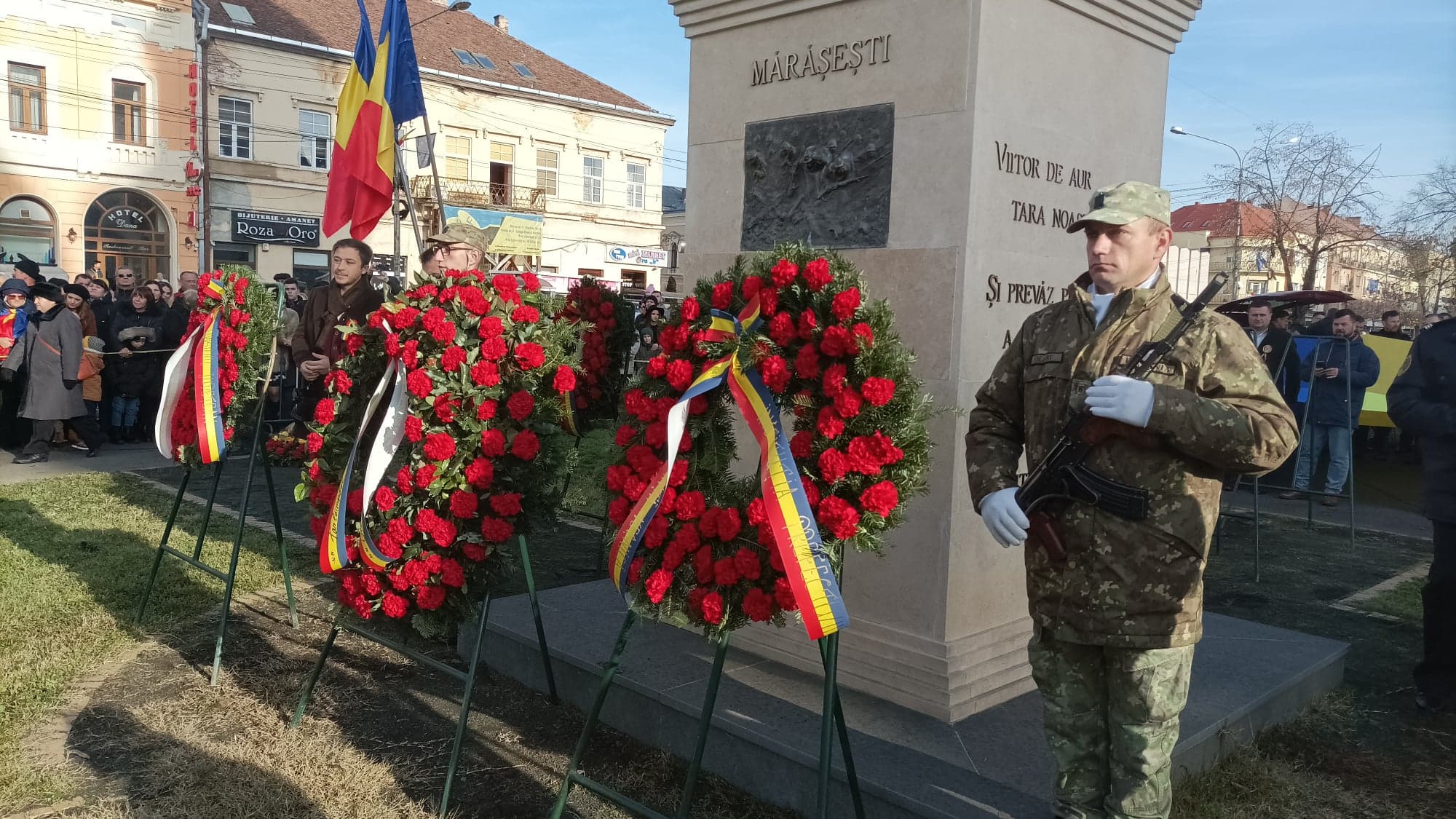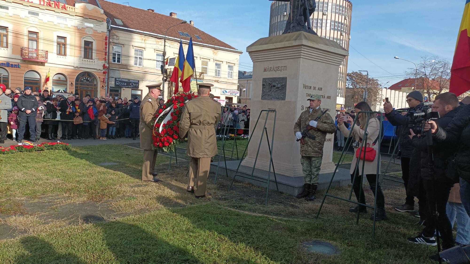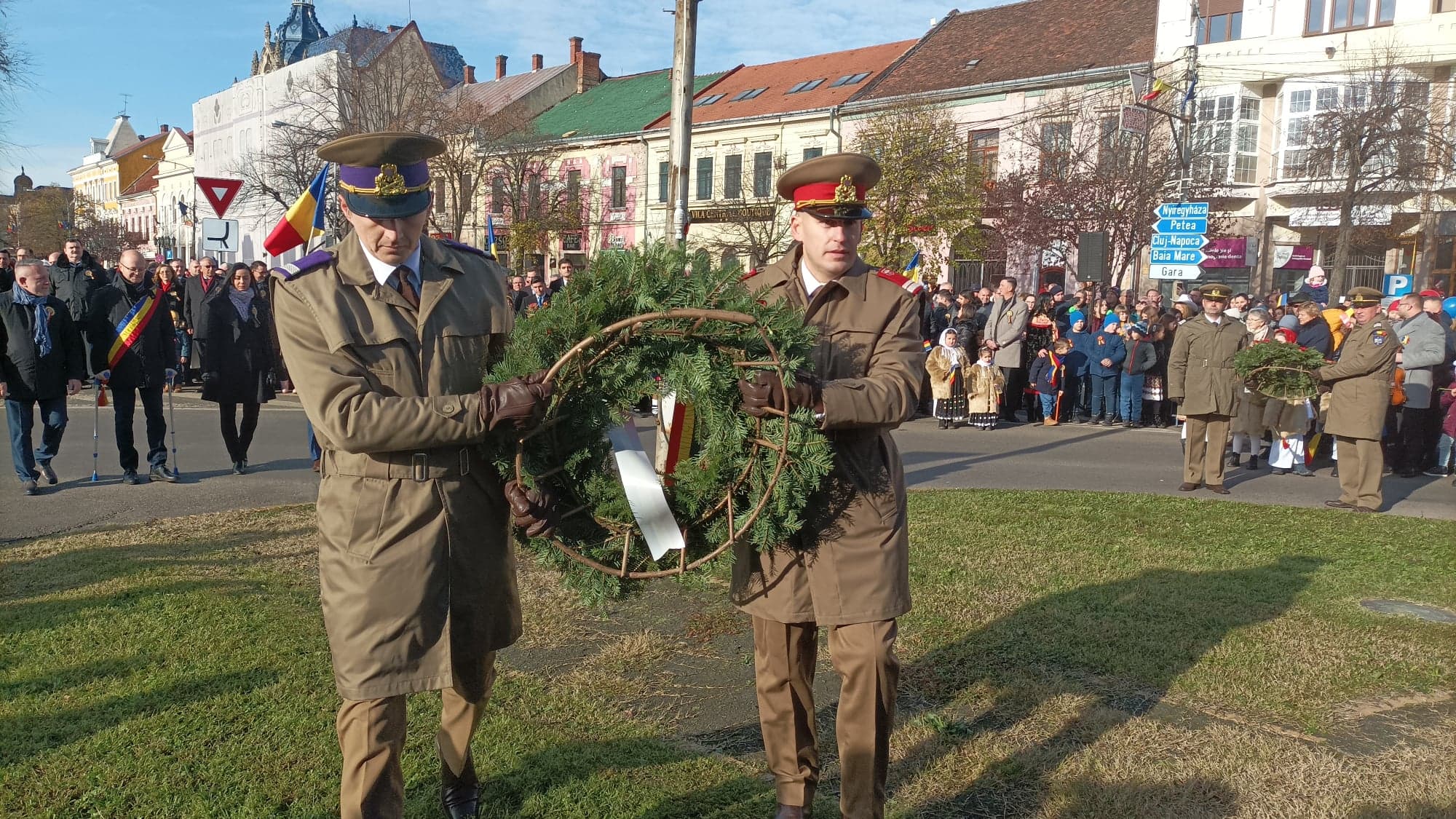 Mai apoi, a venit momentul așteptat de toți sătmărenii, care a avut loc la Statuia Eroului Necunoscut, respectiv ceremonialul militar și religios, depuneri de coroane și defilarea cu personal și tehnică aparținând Garnizoanei Satu Mare.