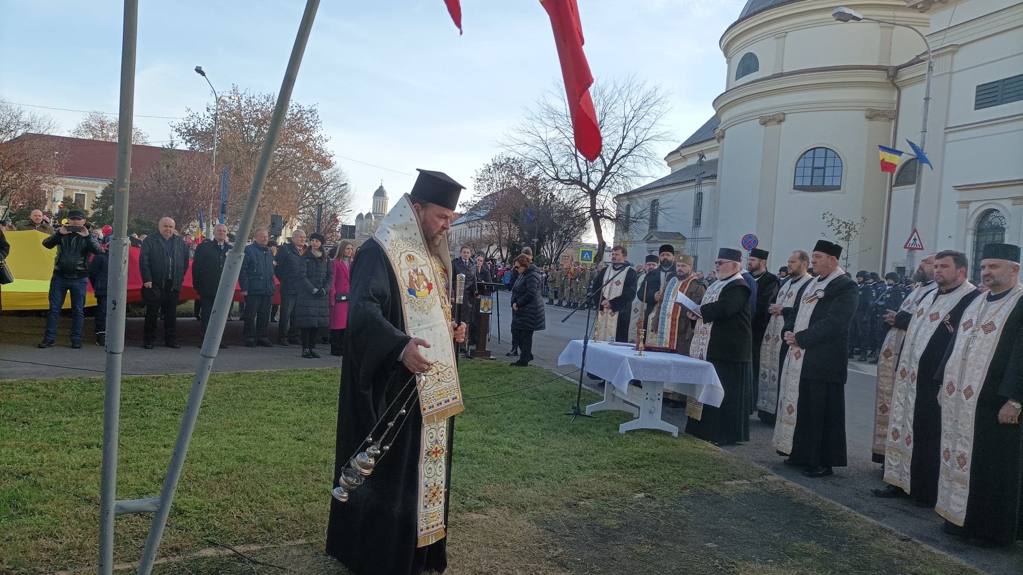 După intonarea Imnului Național, a urmat o scurtă slujbă în memoria eroilor neamului.