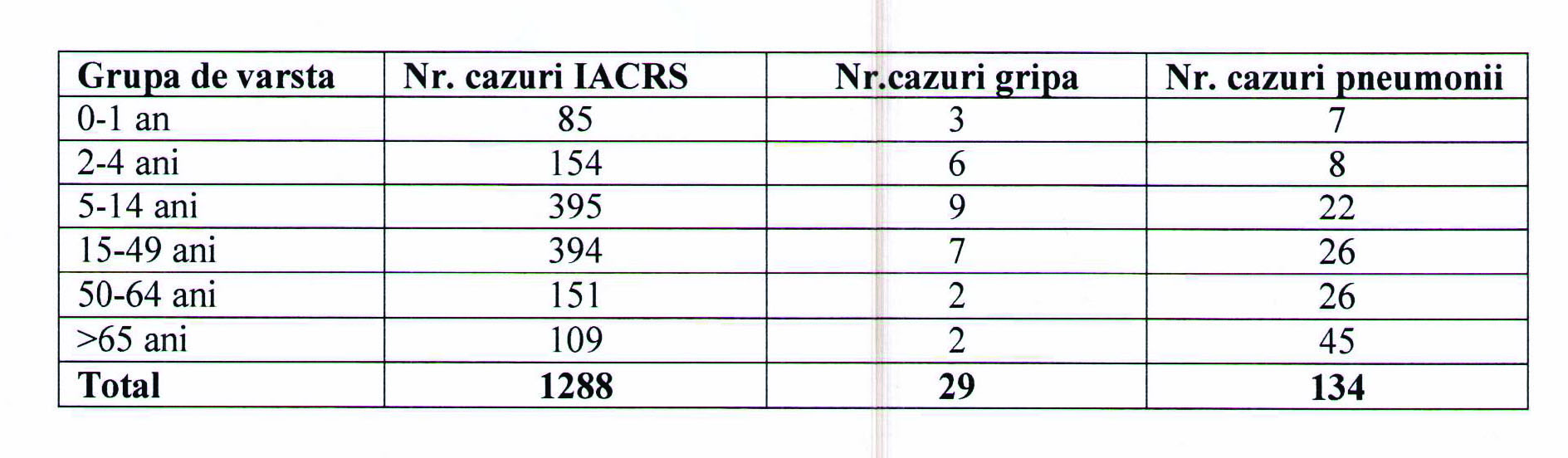 - La nivelul judetului, numarul total de cazuri de infectii respiratorii acute ( IACRS, pneumonii si gripe) a fost de 1451, comparativ cu 1264, inregistrate in saptamana precedenta.