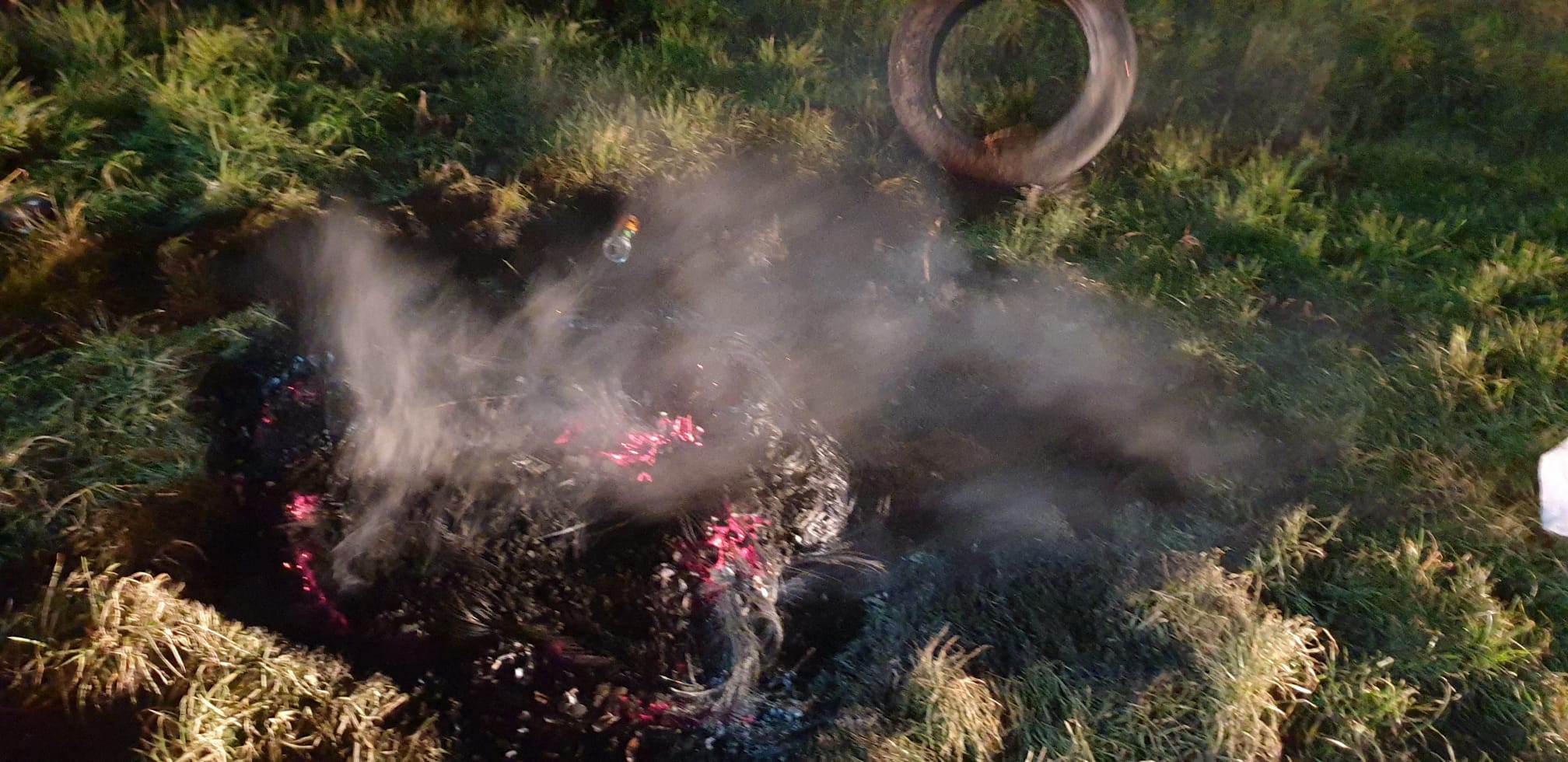 1. Stingere incendiu izbucnit la cauciucuri în localitatea Hrip. Sursa probabilă de aprindere, fiind acțiune intenționată.
