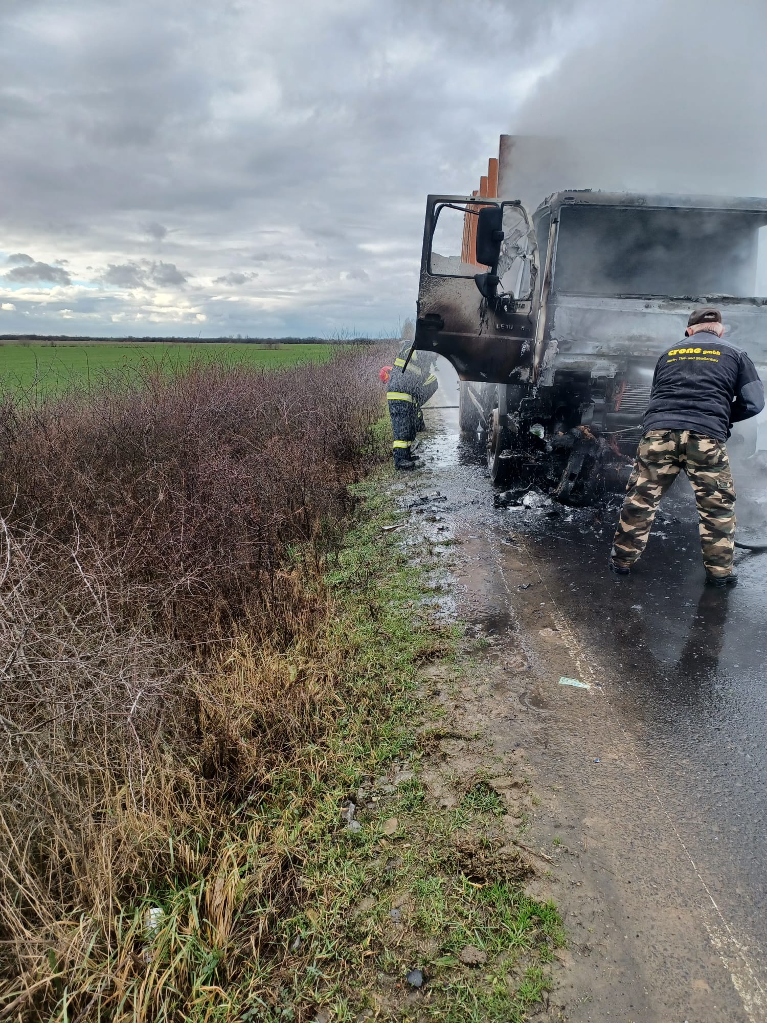 Inspectoratul pentru Situații de Urgență "Someș " al județului Satu Mare, a fost alertat să intervină în data de 17 ianuarie, în jurul orei 12:30, la stingerea unui incendiu izbucnit la o autoutilitară aparținând unui opertor local de salubrizare. Aceasta se afla pe DJ 108 L între localitățile Mădăras și Gelu.
