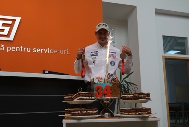 SATU MARE, 19.01.2023. Mani Gyenes s-a întors în mijlocul prietenilor și colegilor lui de la Autonet Import joi, 19 ianuarie, în cadrul unei festivități care a devenit deja o tradiție îndrăgită. Sportivul sătmărean a povestit despre aventurile sale din Dakar 2023 și a închinat o cupă cu șampanie împreună cu colegii săi și cu reprezentanții presei.