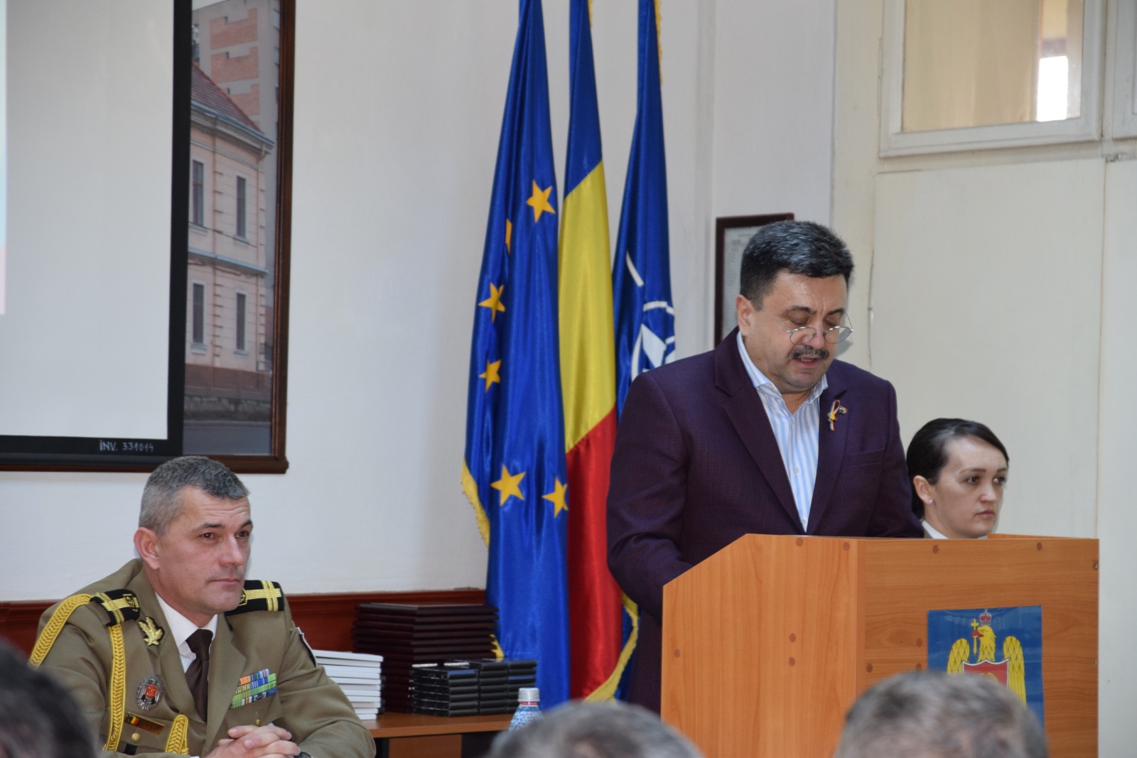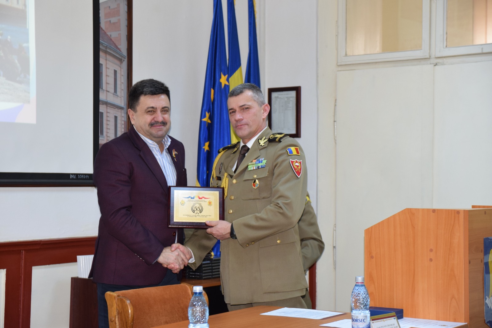 Prefectul Radu Roca alături de directorul de Cancelarie, Radu Iancu au participat azi , 17 februarie 2023, la sediul Centrului Militar Judeţean Satu Mare la activităţle specifice prilejuite de aniversarea a 55 de ani de la înfiinţarea acestei instituţii.