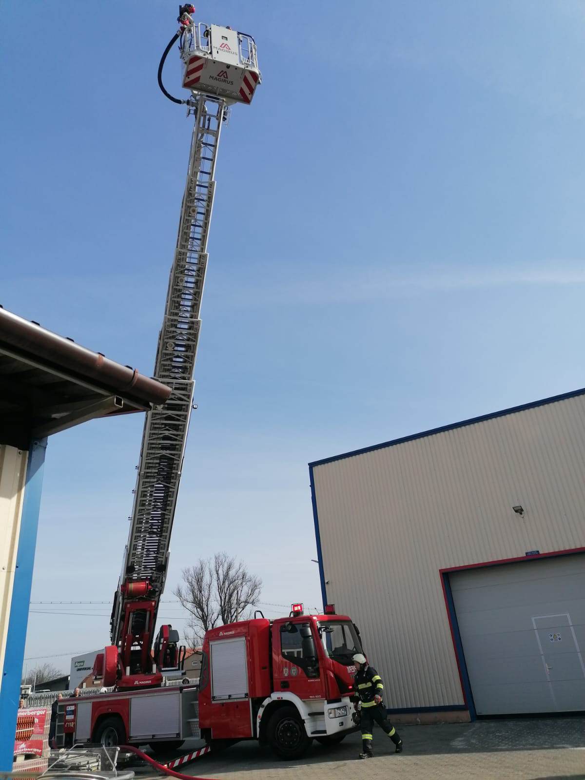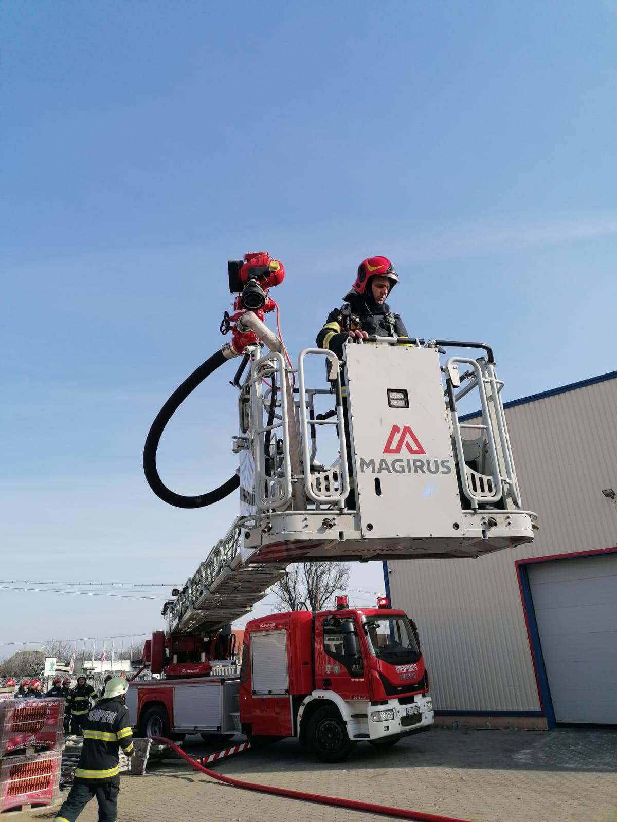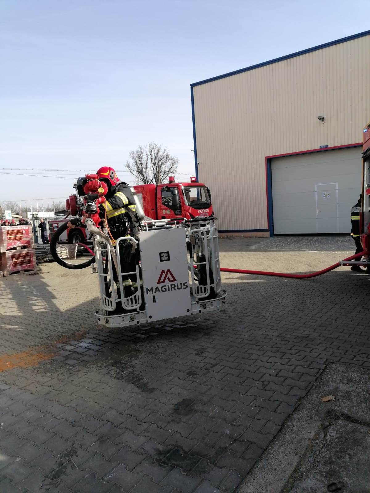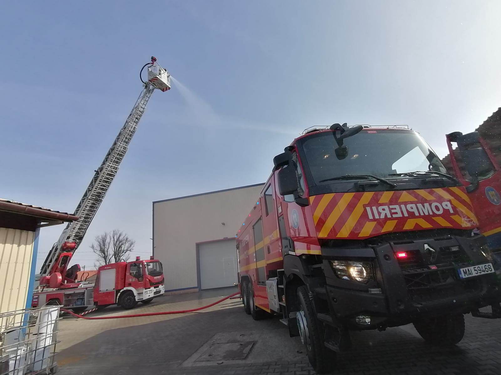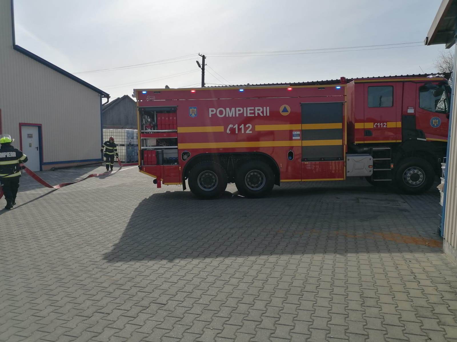 Detașamentul de pompieri Carei, intervine cu 1 autospecială de stingere cu apă și spumă, 1 autospecială cu tun cu o capacitate de 10.000 l și o platformă de lucru la înălțime.