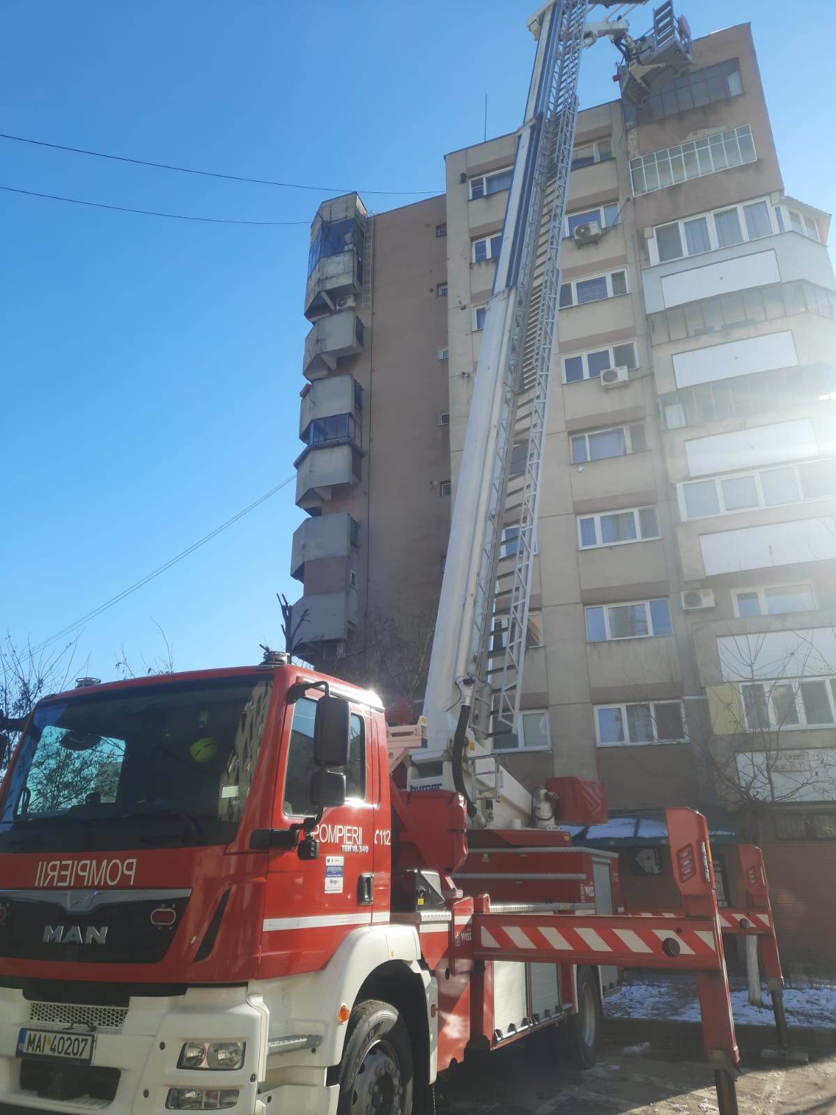 La fața locului s-a deplasat o autospecială de intervenție și salvare de la înălțime cu două cadre militare.