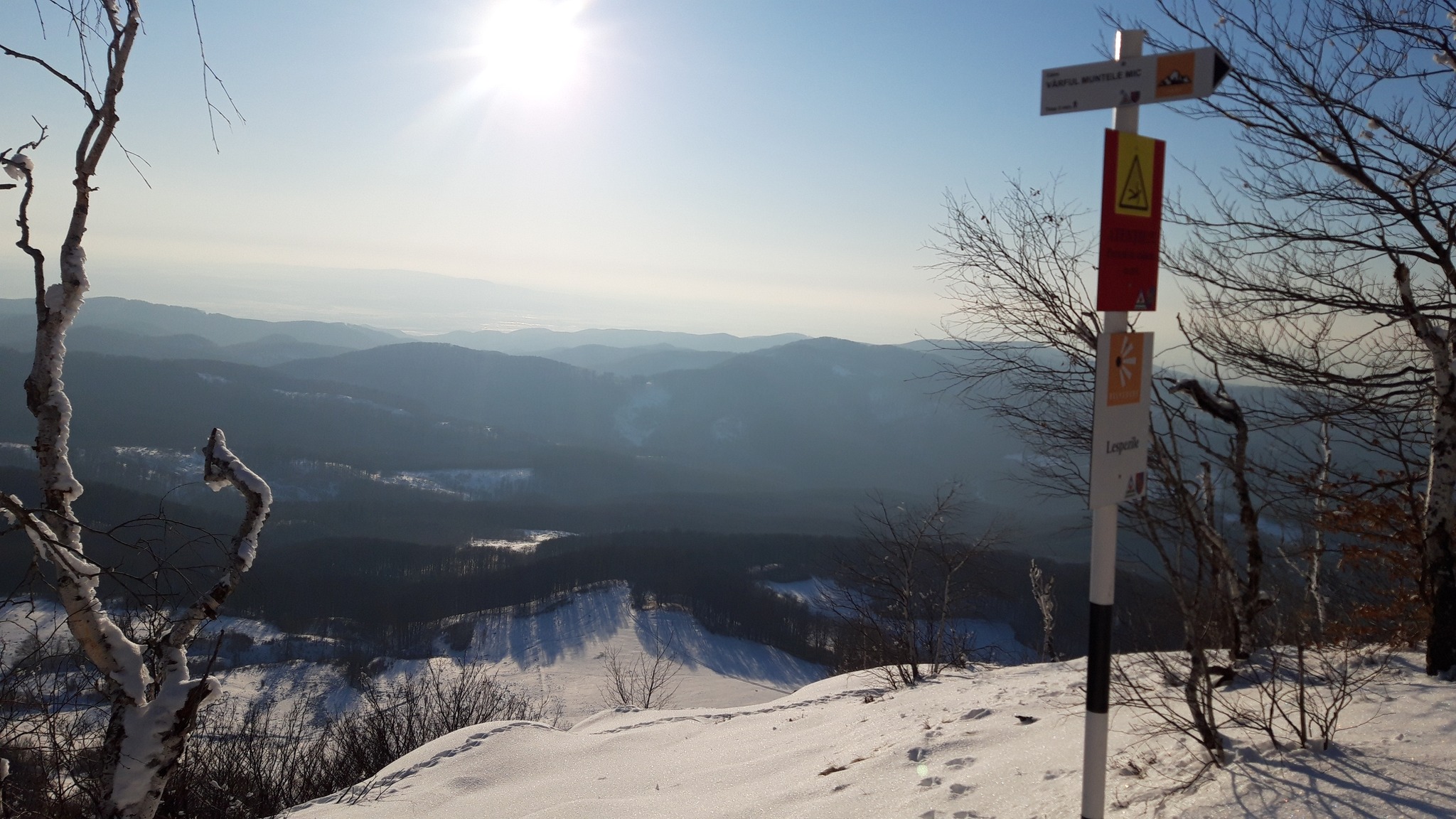 Putem poposi si admira peisajul de acolo de pe vârf, dar pentru a ne bucura pe de-a-ntregul de acest munte putem coborâ cca 50 m către sud, unde ne vom bucura de un punct de belvedere marcat, situat deasupra stâncăriilor denumite Lespezile. În finalul acestui periplu montan, cel mai lung din județul Satu Mare, se impun anumite precizări și anume: