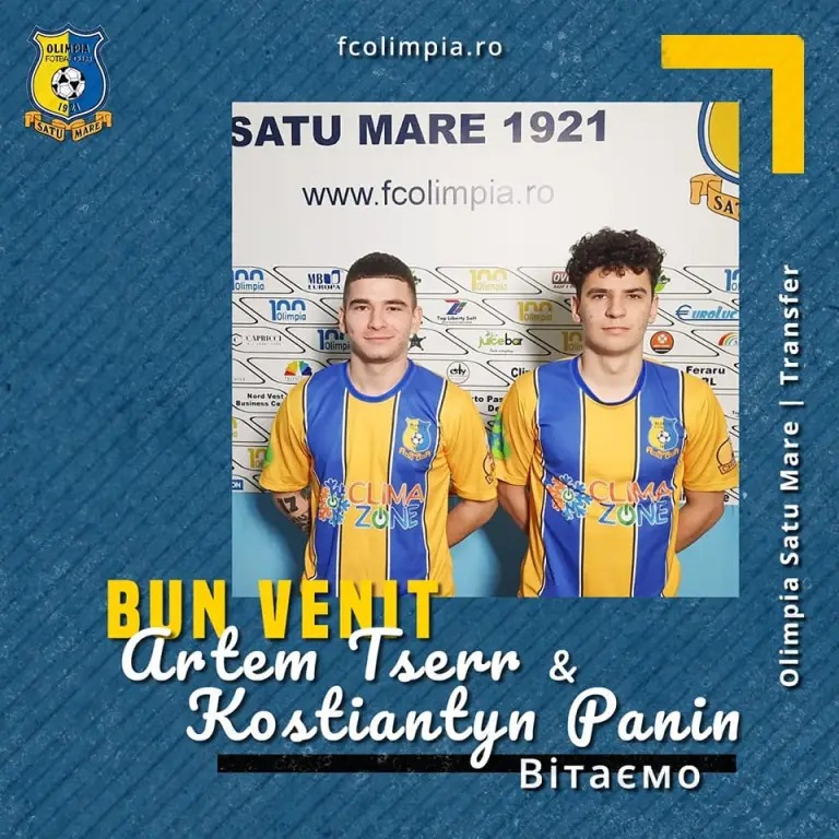 ”Două noi transferuri realizate de clubul nostru în această săptămână! Artem Tserr, 18 ani, mijlocaș lateral. Kostiantyn Panin, 18 ani, mijlocaș central. Amândoi sunt formați la academia de copii și juniori a renumitului club Șahtar Donețk și s-au transferat la Olimpia de la clubul ACS Gloria Tăuții-Măgherăuș. Atât Artem cât și Kostiantyn se pregătesc deja cu #BăiețiiDePeSomeș și sunt gata să dea totul pe teren pentru culorile galben-albastre! Haideți să le urăm bun venit la Olimpia!” transmite conducerea FC Olimpia Satu Mare pe pagina oficială de facebook a clubului.