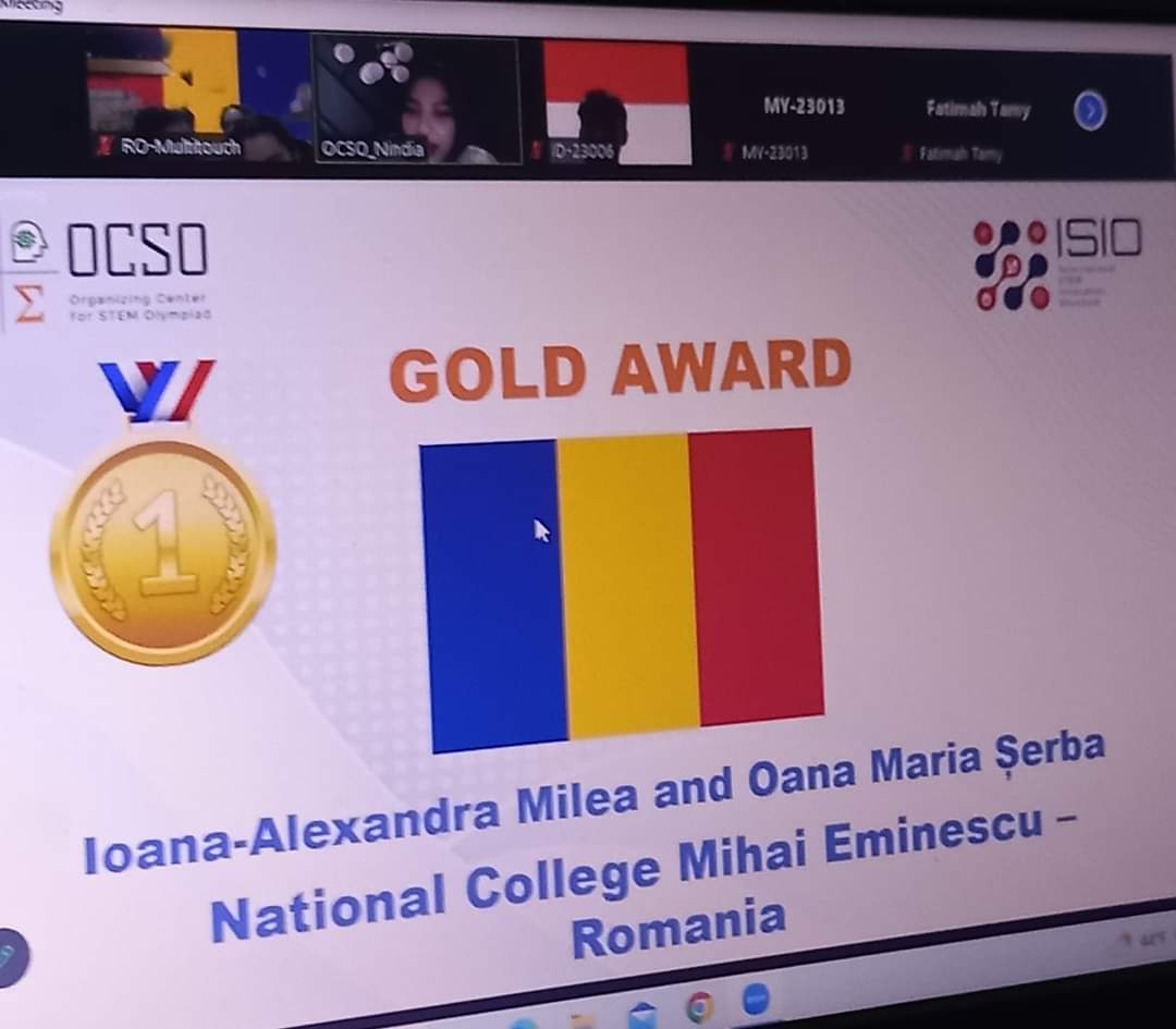 Participarea la competiția internațională a fost urmarea premiilor și medaliilor obținute laConcursul Național de Știință și Inginerie pentru elevi, RoSEF, Suceava, 2022. În urma jurizăriiinternaționale preliminare, proiectele s-au calificat pentru finala internațională. ISIO este un concurs internațional de cercetare pentru studenți și elevi din întreaga lume. Competiția este organizată de Organizing Center for STEM Olympiad (OCSO), implicată îndezvoltarea STEM, pentru a crea abilități de secol 21 (gândire critică, gândire creativă, gândirecomputațională, colaborare, comunicare) prin olimpiade și concursuri. Din organizație fac parte:Japonia, Indonezia, Vietnam, Germania, UAE, Mexico, Grecia, Bulgaria și Philippines. Competiția s-a desfășurat între 27-30 Ianuarie 2023, online.