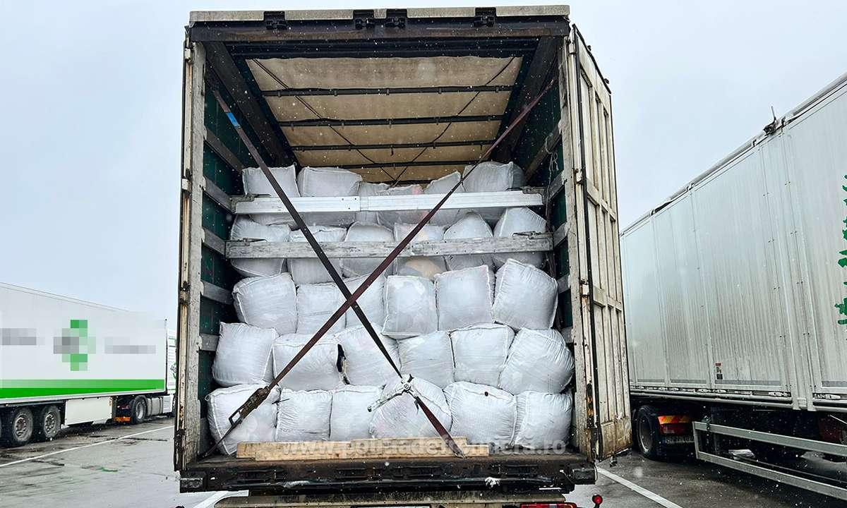 Acesta transporta, conform documentelor de însoțire a mărfii, 18.000 kg deșeuri (îmbrăcăminte), de la o firmă din Ungaria pentru o societate comercială din județul Satu Mare.