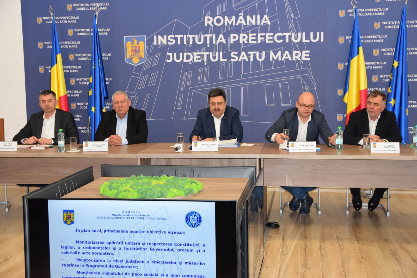 La un an de la numirea în funcție, prefectul Radu Roca alături de subprefecții Altfatter Tamás și Romeo Pop, de secretarul general al Instituției Prefectului, Cosmin Dorle, și directorul cancelariei, Radu Iancu, a făcut o prezentare a realizărilor, a proiectelor și a obiectivelor pe termen lung asumate, în echipă, pentru transpunerea Programului de Guvernare 2021 – 2024 în județul nostru, în cadrul unei conferințe de presă. În cele ce urmează redăm aproape integral prezentarea făcută de prefectul Radu Roca.