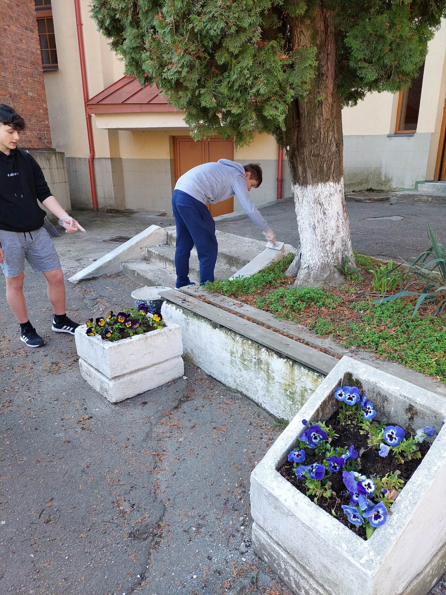 Tinerii au plantat trandafiri, panseluțe, arbust tuia, de asemenea au toaletat și copacii din curte, sub îndrumarea profesorului Dr. Popdan Gheorghe Iosif.