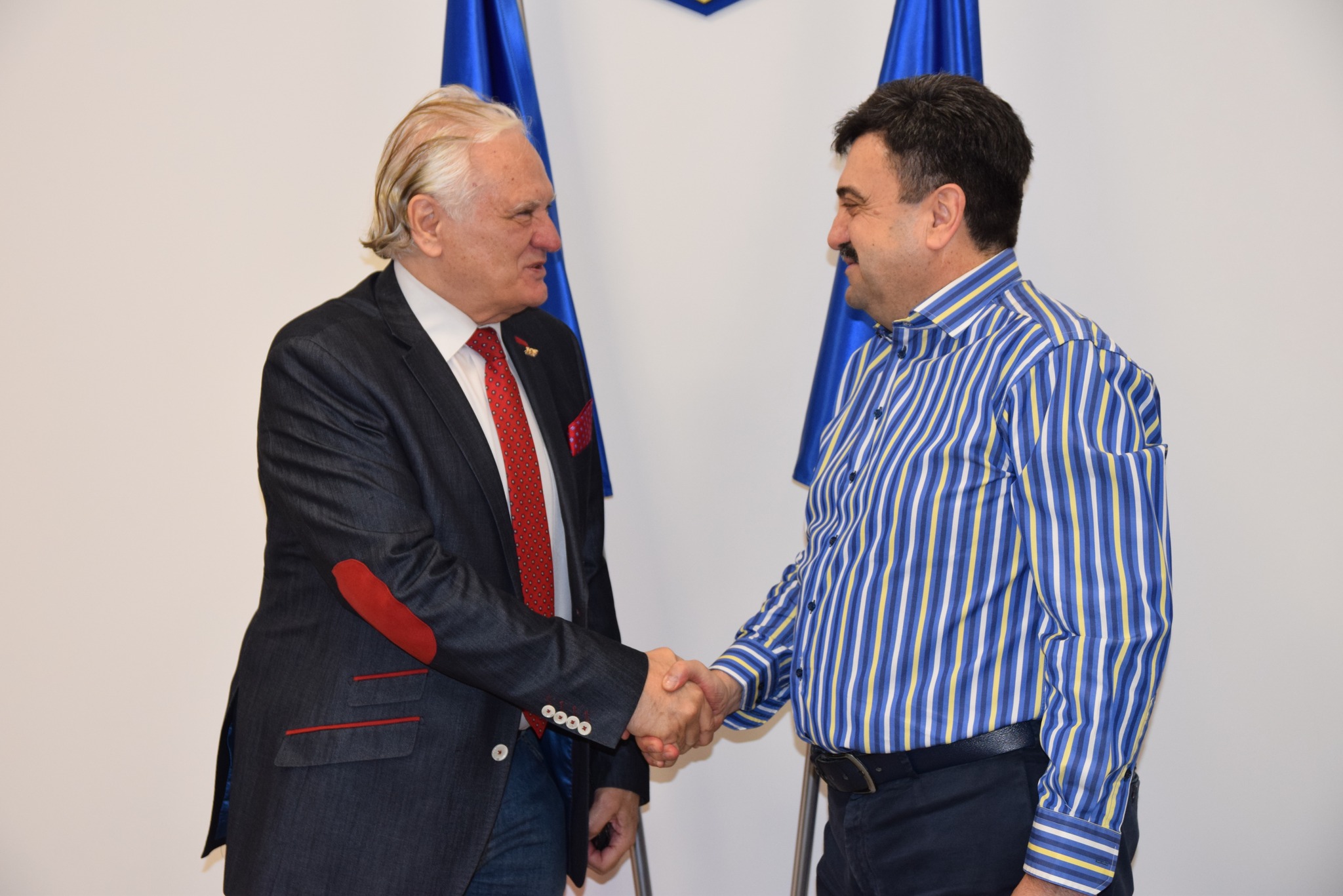 Prefectul Radu Roca a avut în această dimineață o întâlnire cu o delegație a Uniunii Mondiale de Folclor, alcătuită din prof. dr. Dorel Cosma – președinte, Pahone Pop- trezorier și Robert Laszlo – prim-vicepreședintele Asociației Naționale de Folclor din România.