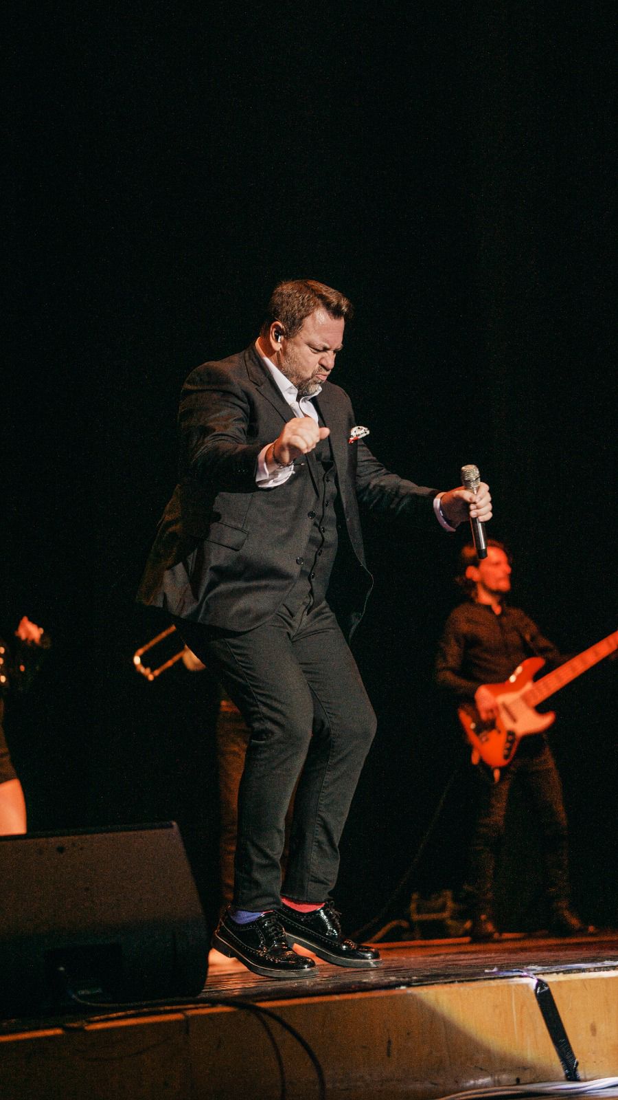Cu un echilibru delicat între rebel și elegant, muzica și interpretarea reflectă întocmai personalitatea lui jovială dar profundă și ne instigă să trăim intens întreaga experiență a spectacolului său. Fie că e bucuria dansantă specifică lui sau un moment mai tandru, emoția pulsează mereu vie în întreaga ambianță.