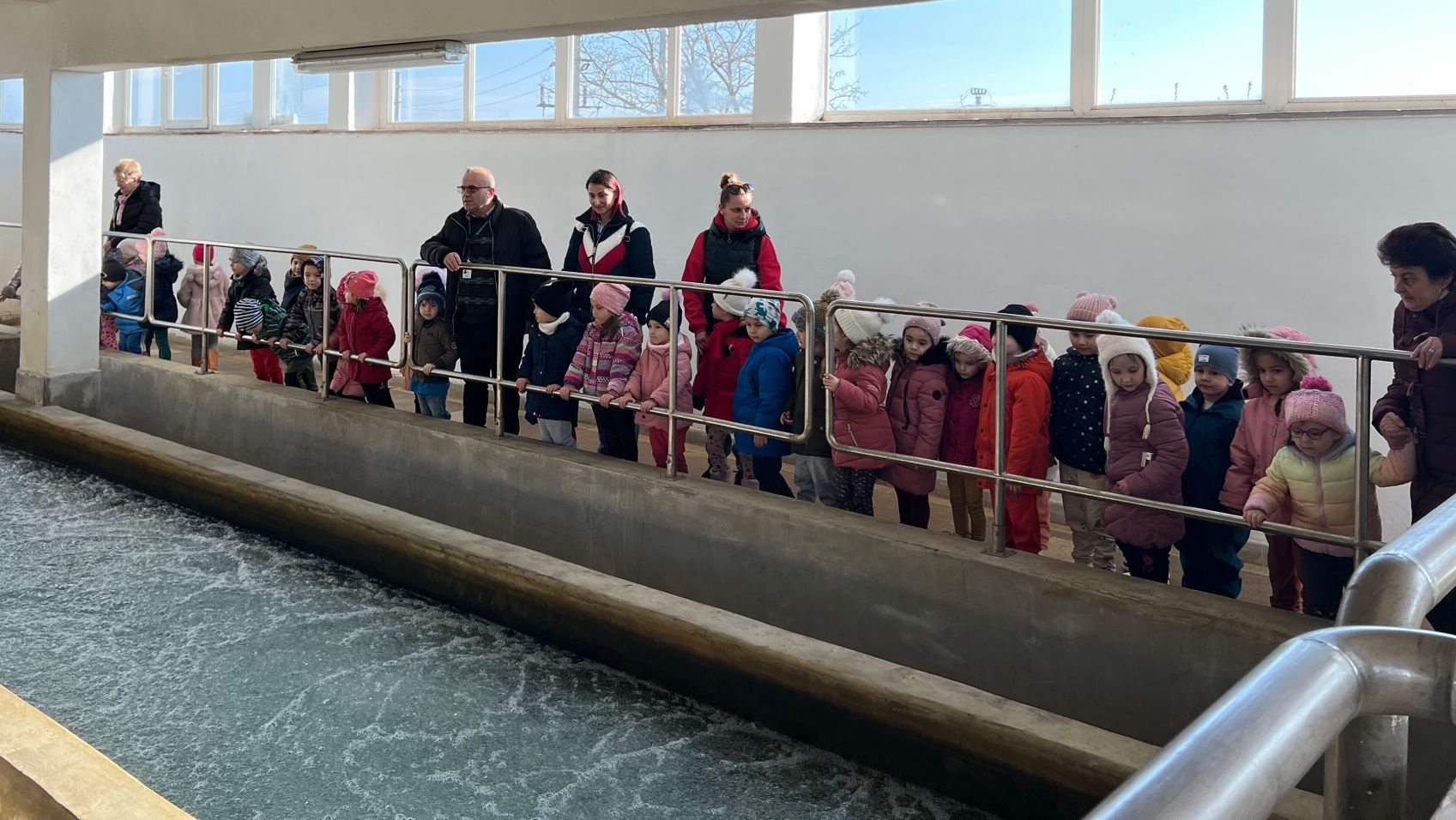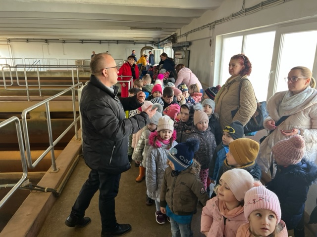 Copiii s-au plimbat in toata uzina pentru a observa bazinele de apa, aparaturile si chiar pompele care trimit apa catre oras. Au primit si suveniruri , pentru ca s-au comportat civilizat in vizita.