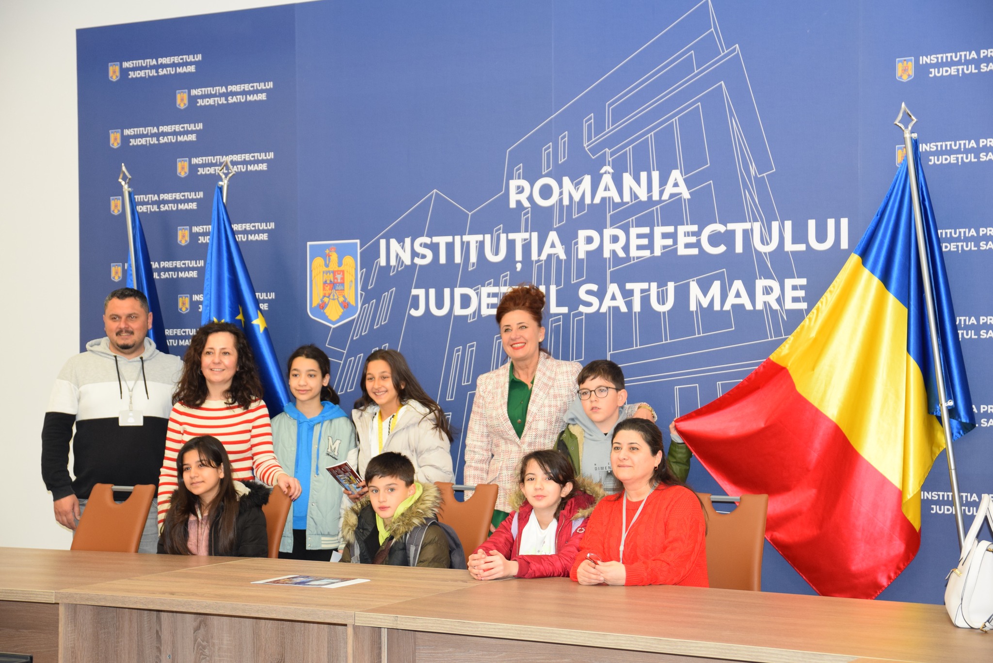 Prefectul Radu Roca alături de directorul de Cancelarie, Radu Iancu a primit în această dimineață la sediul Instituției Prefectului județul Satu Mare o delegație de profesori și elevi ce participă în această săptămână la un Proiect ”Erasmus+” derulat de Școala Gimnazială ”Octavian Goga” - Satu Mare în parteneriat cu unități de învățământ din Turcia ,Spania , Cehia și Polonia.