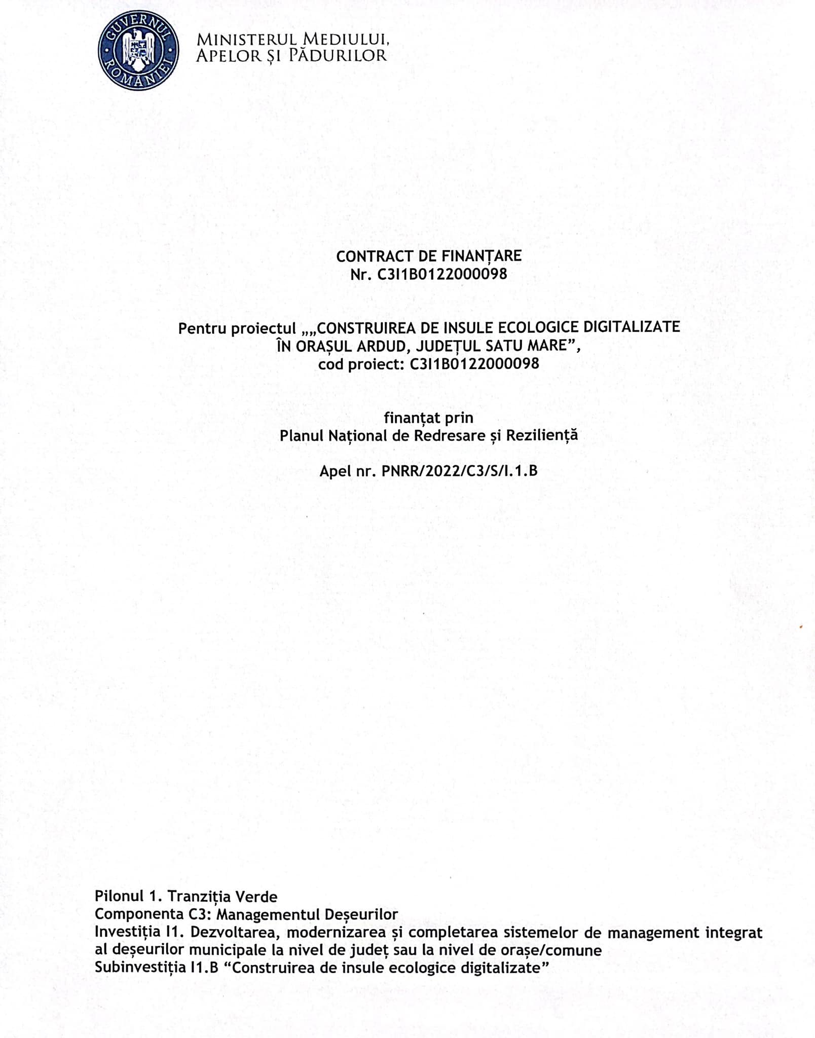 Pe componenta C3, managementul deșeurilor, prin programul național PNRR, Primaria Orașului Ardud prin dl primar Ovidiu Duma, a semnat contractul de finanțare care prevede instalarea a trei insulele ecologice digitalizate pe raza orașului Ardud.