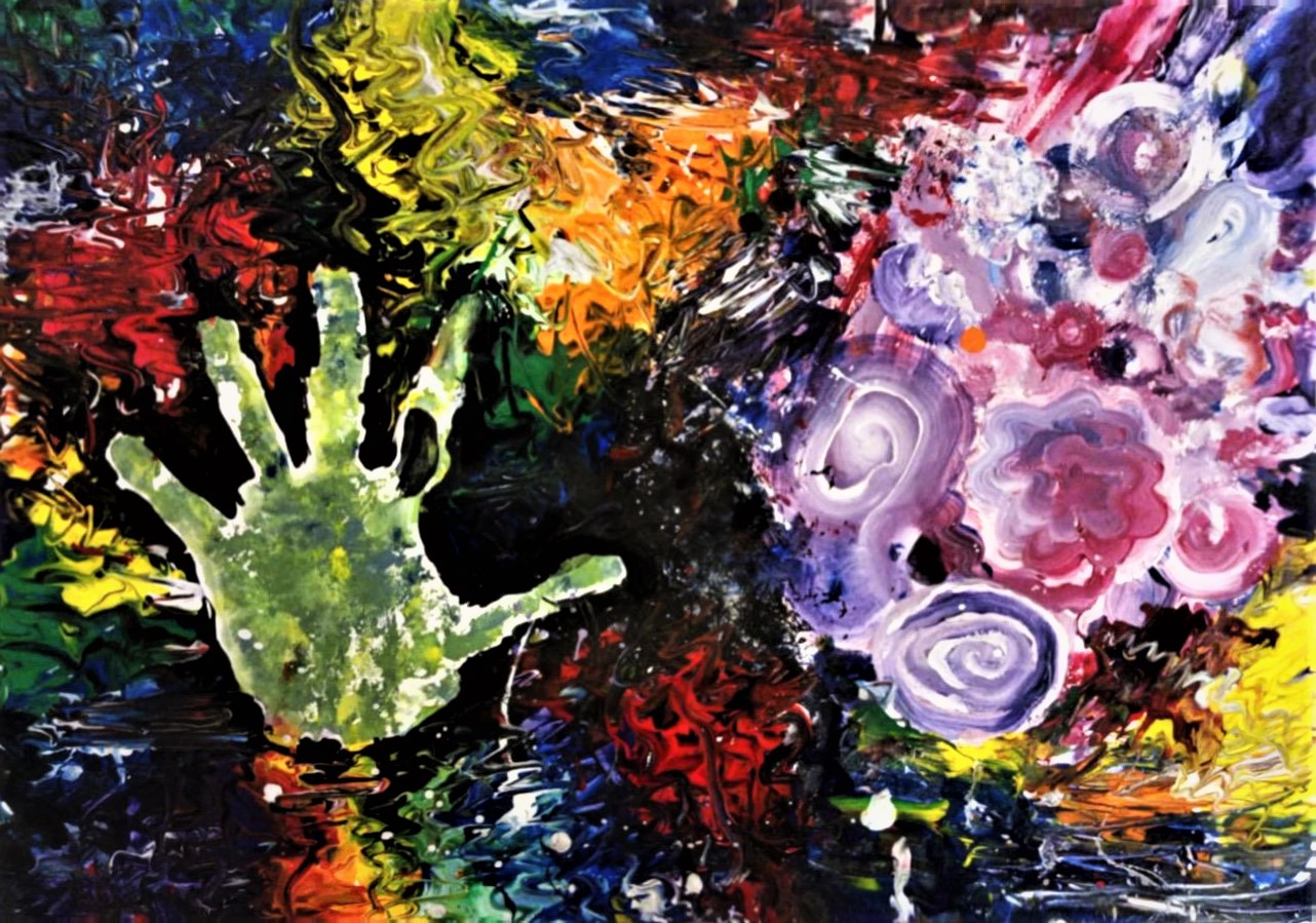 (,,Mâna care mi-a colorat lumea" - desen pe foaie A3 realizat în acrilic. Maria Tămaș - clasa a VII-a - elevă la Școala Gimnazială Mircea Eliade - Satu Mare)