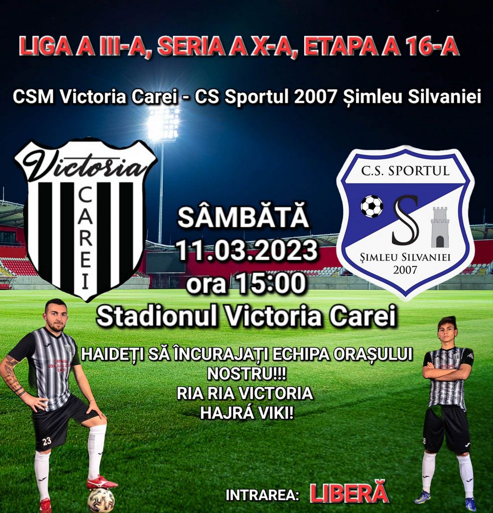 Partida Victoria carei- Sportul Șimleu se joacă sâmbătă de la ora 15.