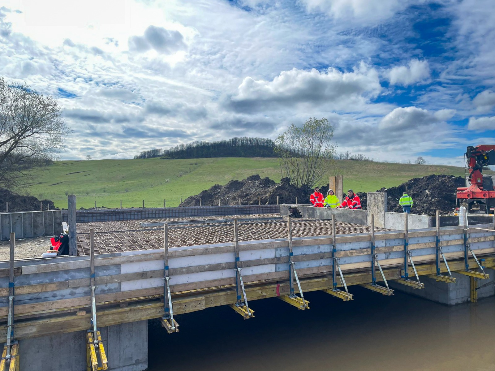 La pod s-au realizat lucrările de cofrare și armare a plăcii de suprabetonare și se pregătește turnarea betonului. Întreaga investiție se realizează cu fonduri europene.