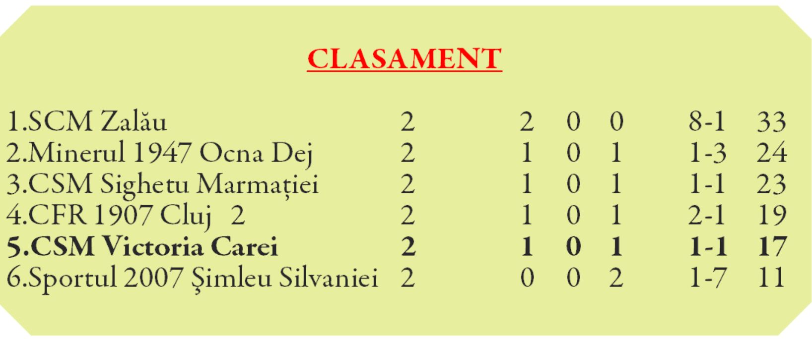 Victoria se distanțează la șase puncte de ultima clasată, Sportul Șimleu care a cedat acasă, 0-2 cu CFR 2 Cluj.