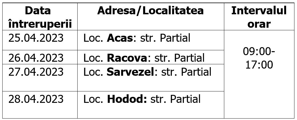 Ne cerem scuze pentru neplăcerile cauzate de aceste întreruperi, care sunt însă necesare pentru asigurarea unei bune funcţionări a instalaţiilor.