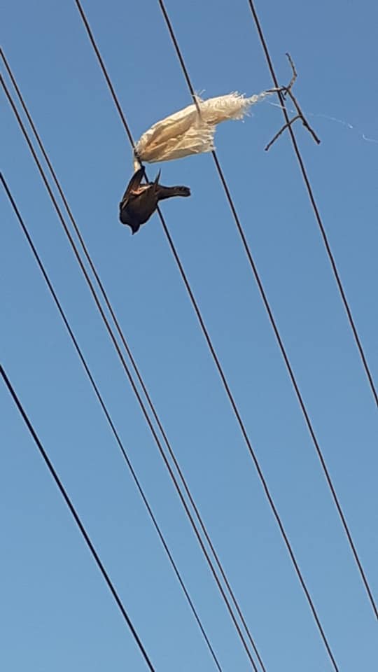 "Da, se confirmă", sunt cuvintele echipajului ajuns la fața locului. Pasărea era prinsă într-o bucată de rafie și agățată de cablurile electrice, aflându-se în incapacitate a de a-și continua zborul ...poate către cuib...