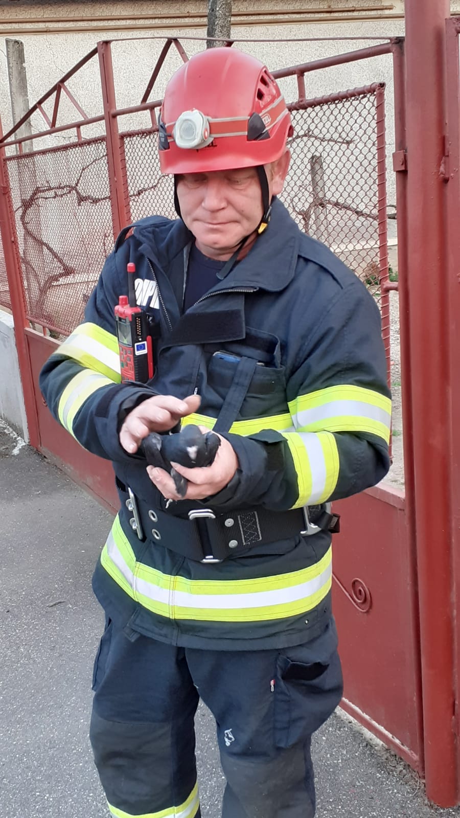 Sâmbătă, înainte de lăsarea serii, un apel la 112 transmite, că o pasăre neagră este prinsă în cablurile electrice de pe strada Oborului, mun.Carei. Pompierii din dispecerat comunică cu furnizorul local de electricitate dar anunță și colegii Detașamentului de Pompieri Carei, care se deplasează la locul indicat cu o autoscară și două cadre militare.