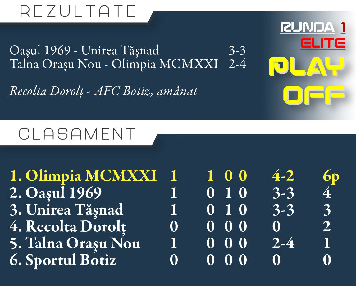 Cu acest prim succes sătmărenii se instalează în fotoliul de lider din play off iar etapa următoare vor avea parte acasă de derby-ul cu Unirea Tășnad.