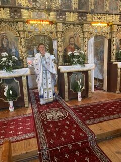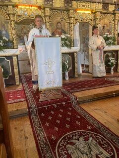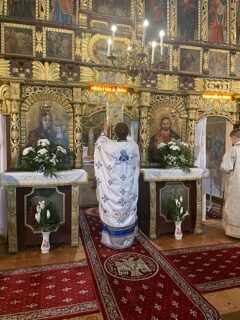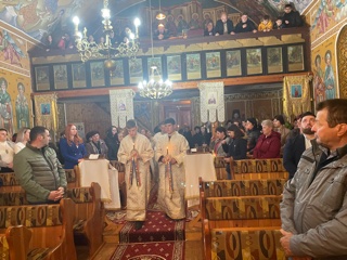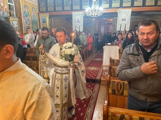 La finalul slujbei , Părintele Paroh Bogdan Mureșan a rostit rugăciunile de binecuvântare a bucatelor, stropindu-le cu aghiasmă.