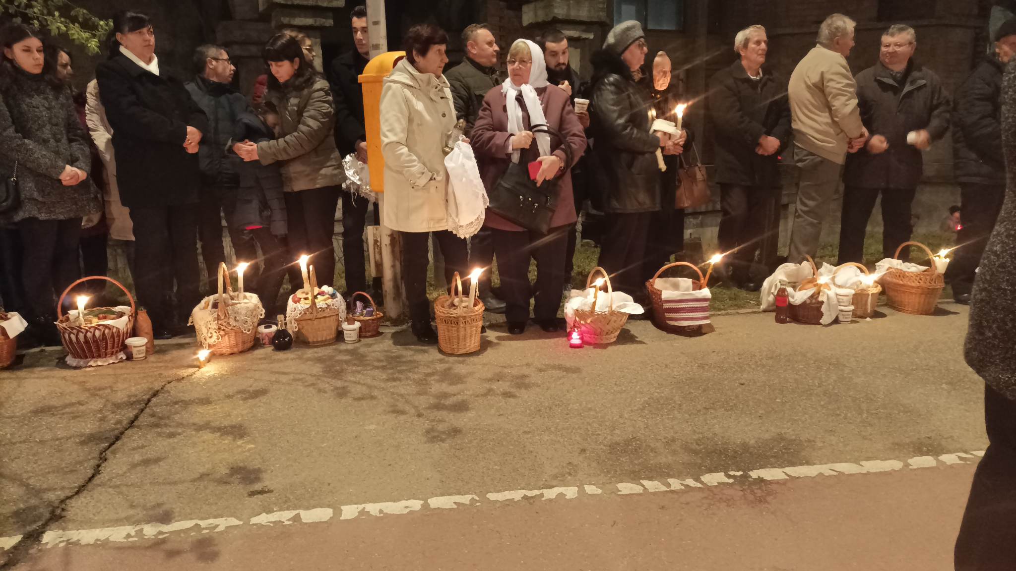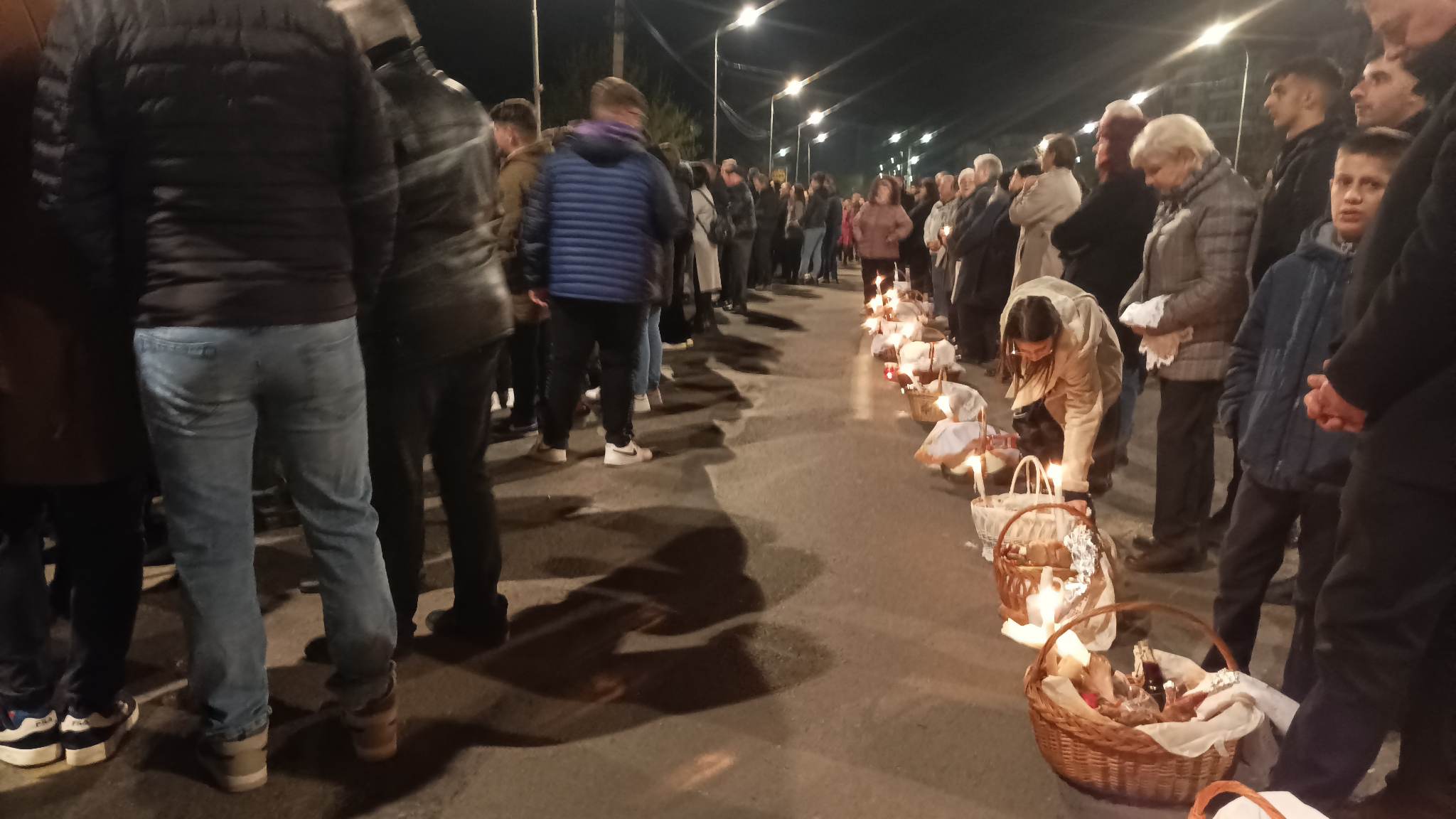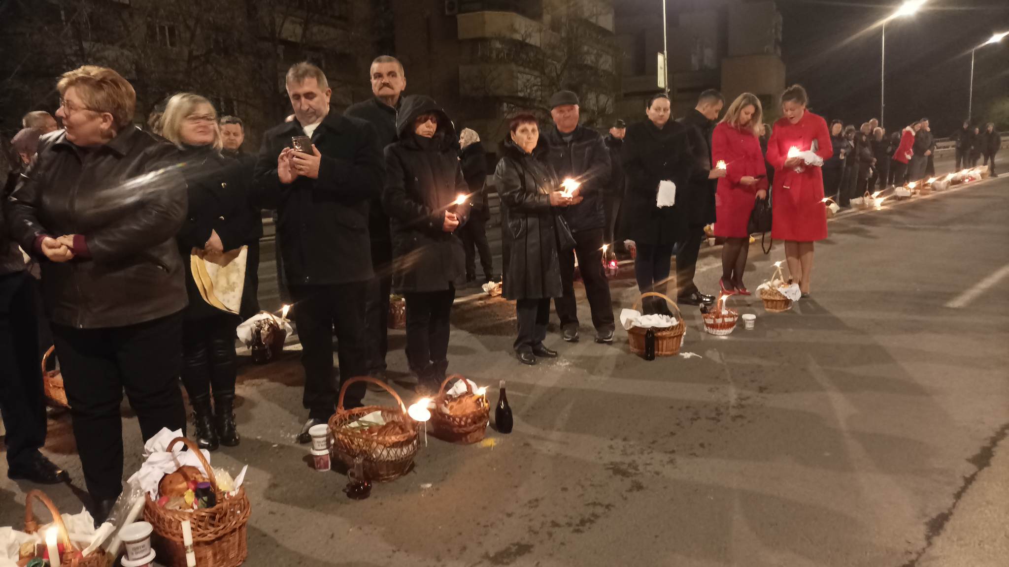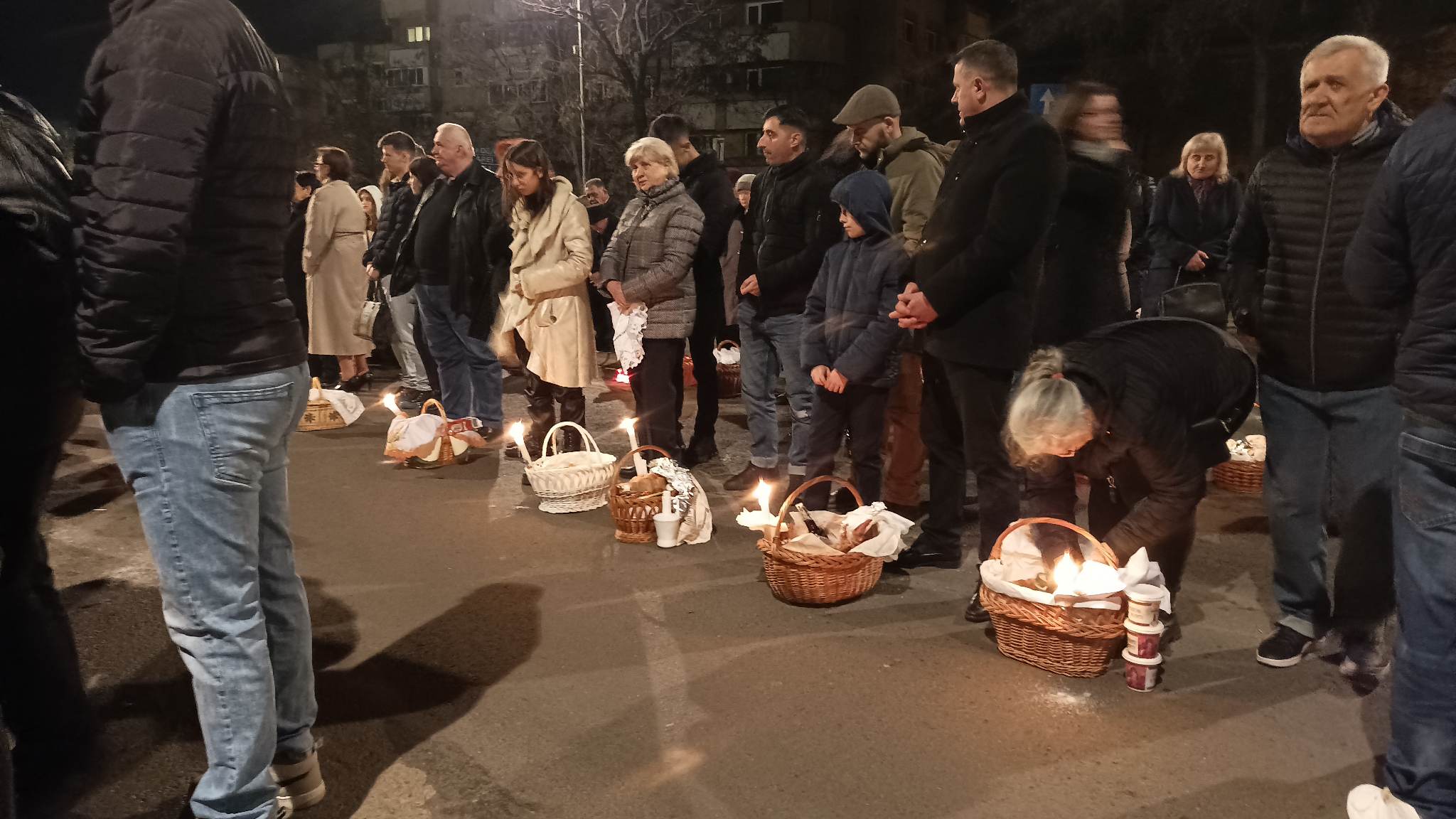 Sătmărenii care nu au mai avut loc în lăcașul de cult, s-au aliniat cu coșurile pline de bunătăți, în afara Bisericii, începând de pe podul Golescu și până la sensul giratoriu de pe strada Careiului.
