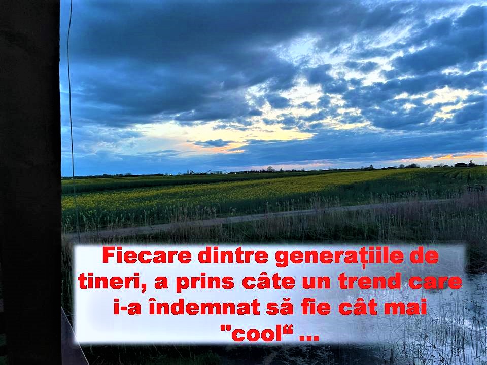 Scriu aceste rânduri zâmbind și amintindu-mi cu drag de perioada în care și eu mă străduiam să fiu foarte cool, abordând diferite stiluri vestimentare, tunsori și expresii doar pentru că așa era la modă și pentru că așa mă simțeam și eu în rând cu lumea.
