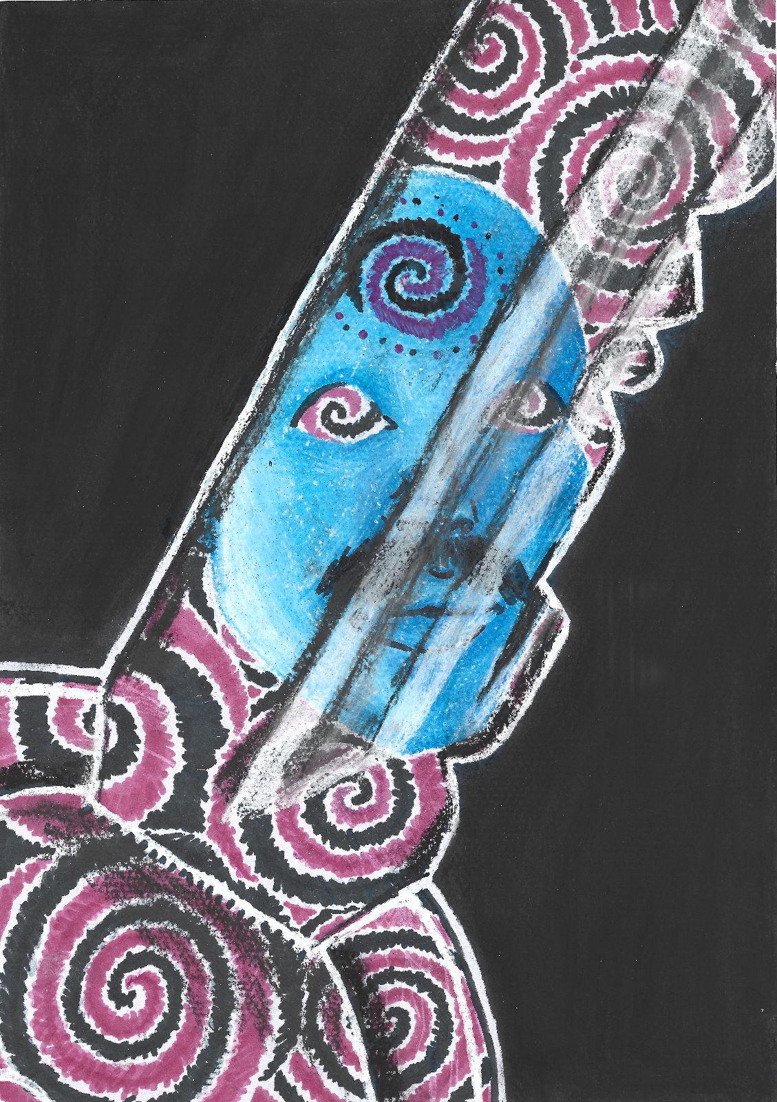 (Titlul lucrării: ,,CHEIA PUTREDĂ SPRE GLORIA LUMII,, - desen pe foaie A4 realizat în pastel-uri cerate si soft. Maria Tămaș - clasa a VII a B - elevă la Școala Gimnazială ,,Mircea Eliade,, - Satu Mare)