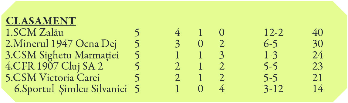În celelalte două partide ale etapei, Sportul Șimleu-SCM Zalău și CFR II Cluj- CSM Sighet.