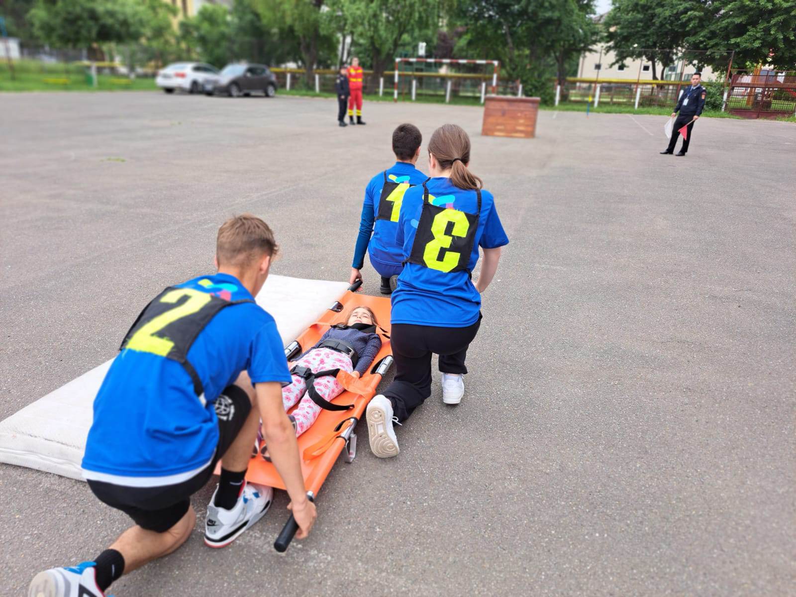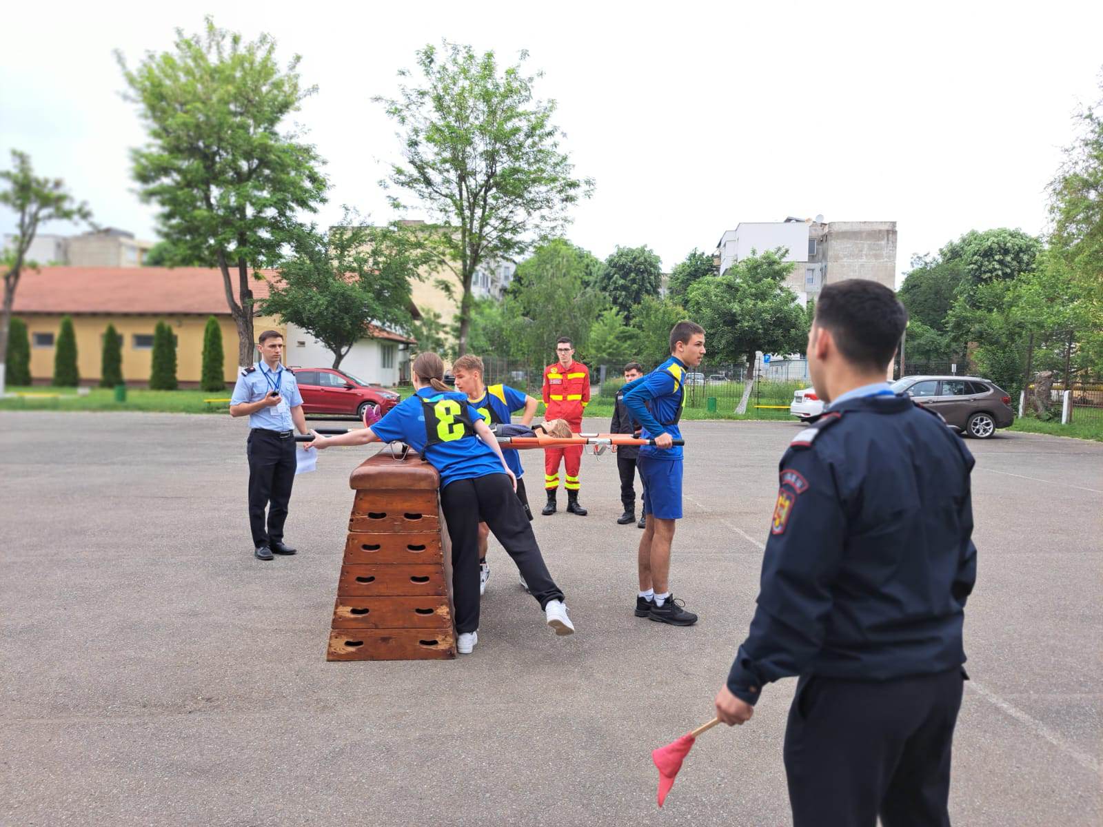 Școala Gimnazială „Octavian Goga”, Liceul cu Program Sportiv și Liceul Tehnologic „Elisa Zamfirescu”, au trecut astăzi printr-o probă scrisă și două probe practice - transportul asistat al unui accidentat, așezat pe targă, pe o distanță de 50 de metri și deplasarea cu masca pe figură într-un raion cu obstacole, contaminat.