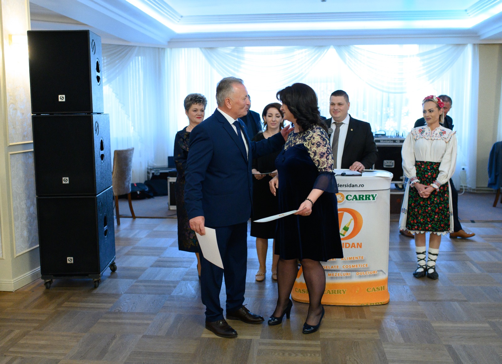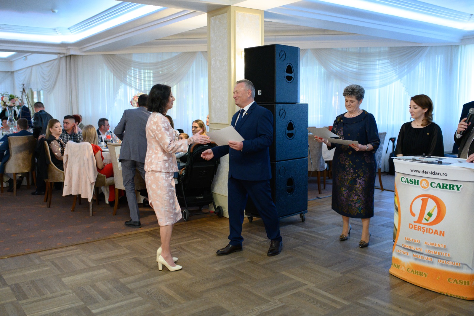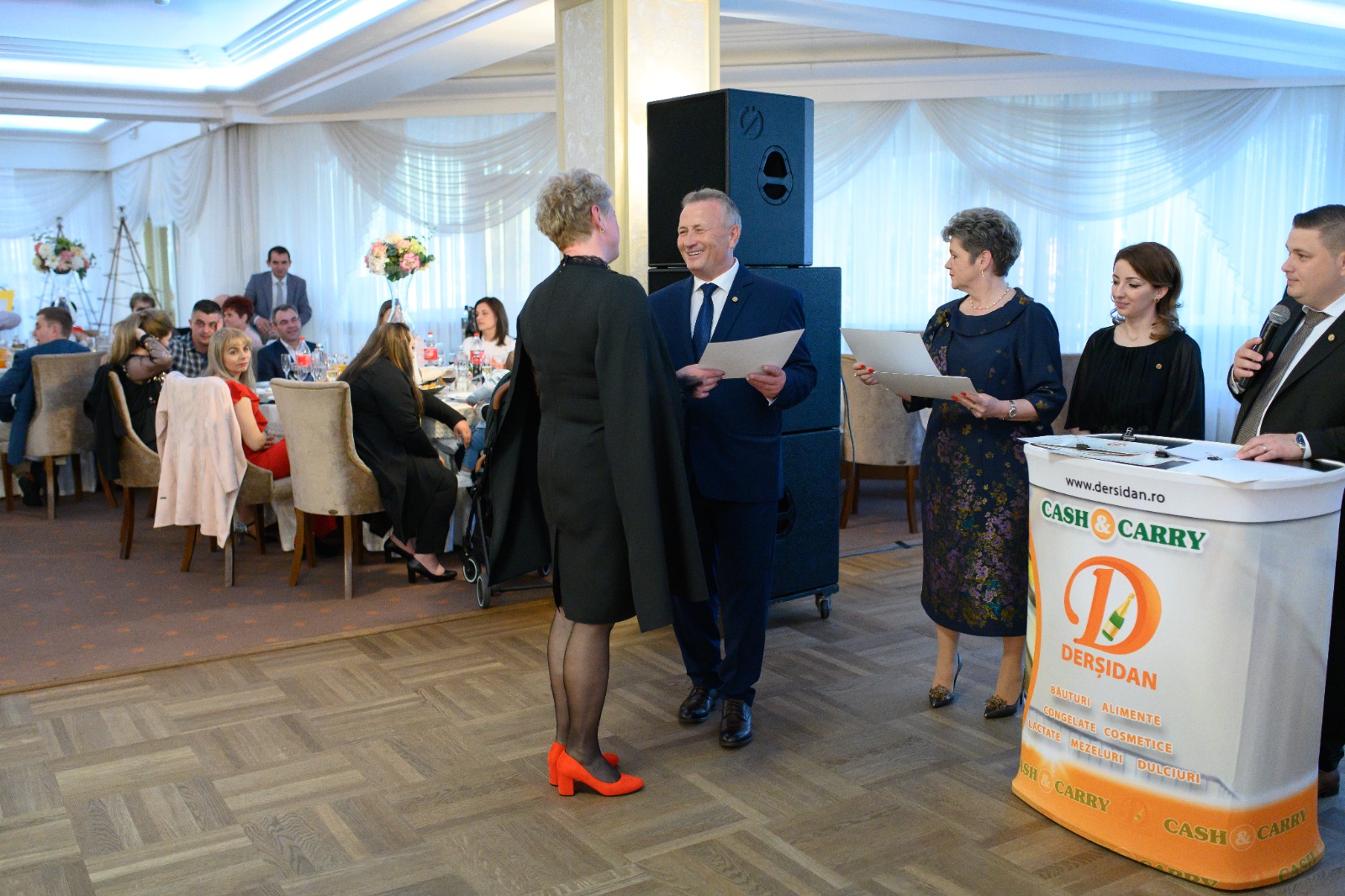Adrian Derșidan, însoțit de părinți și soția sa, au înmânat în cadrul evenimentului de sâmbătă, diplome și premii în bani angajaților.
