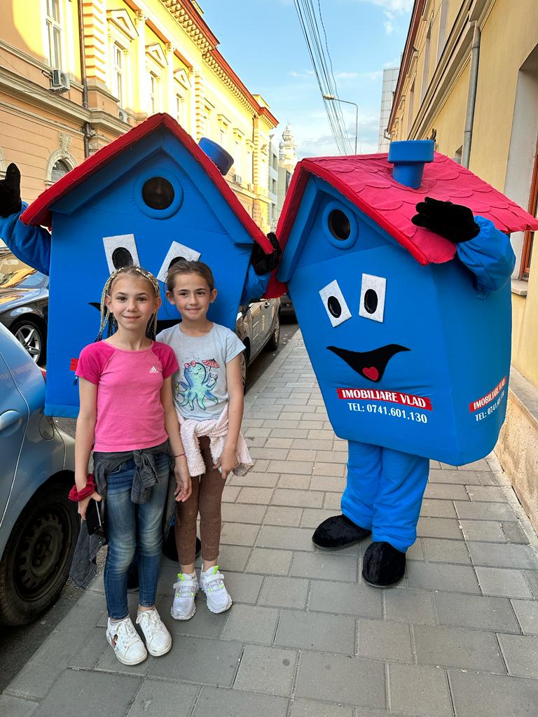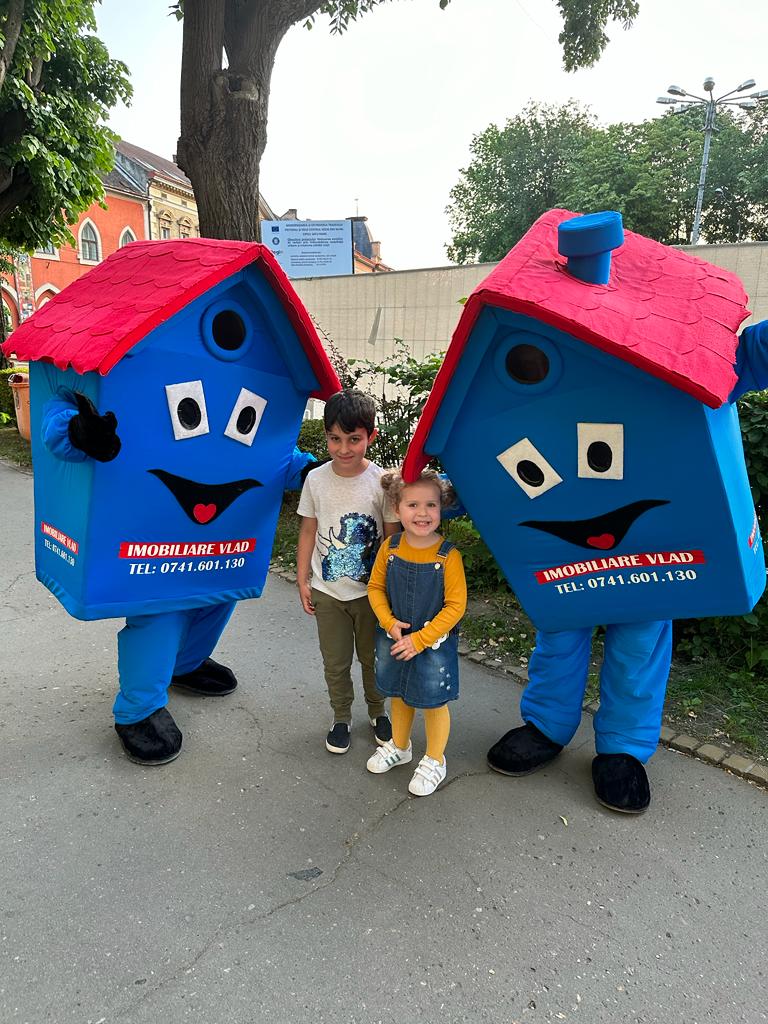 Mascotele sunt adevarate simboluri ale copilariei, nu doar pentru cei mici, cat si pentru cei mari. De aceea, intalnirea cu mascotele Agenției Imobiliare Vlad este plina de entuziasm si bucurie mai ales pentru copii, indiferent de situatia in care acestea isi fac aparitia.